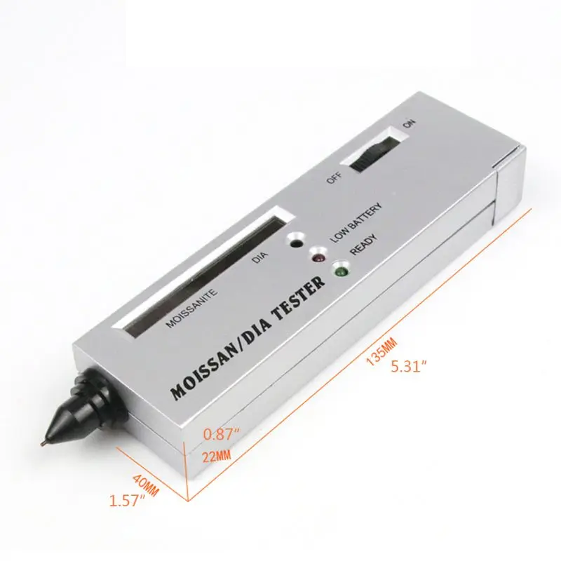 Профессиональный ювелирные изделия Алмазный тестер Алмазный Селектор светодиодный Moissanite тестер Высокая точность детектор ручка ювелирные инструменты Прямая поставкаOOTDTYОсобенности:1. Легкий и компактный размер, легко и удобно носить с собой.2. Алмазный Селектор II поможет вам определить, является ли ваш алмаз реальным или поддельным.3. Алмазный Селектор II оснащен сумкой из полиуретана и небольшим испытательным лотком для хранения рассыпчатых камней.4. Зеленый индикатор будет показан на алмазном селекторе II, если камень является настоящим бриллиантом. Это сделает непрерывный гудящий звук, когда пользователь случайно коснется металла, а не камня.5. Moissanite тестер является подходящим инструментом с алмазным селектором II. Он используется только для различия бесцветного моиссанита.6. Неразрушающее тестирование, простая и точная работа, низкое энергопотребление, низкий уровень заряда батареи (индикация красный светильник) для моиссанитового тестера.7. После 10 минут использования Moissanite тестер, индикатор питания Светильник (зеленый светильник автоматически отключается) и длинные звуковые сигналы предупредят пользователя, чтобы выключить инструмент.Спецификация:Тип изделия: Ювелирный инструментМатериал: металлЦвет: серебристыйРазмер: прибл. 2,2 × 4 × 16 см/0,87 × 1,57 × 6,30 дюймаБатарея: 9 В (не входит в комплект)Вес: прибл. 156 гПримечание для Moissanite тестер:1. Зонд этого инструмента очень чувствителен. Он должен носить ПУ сумку, чтобы быть защищенным, когда он не используется.2. Батарея с низкой мощностью должна быть заменена в режиме реального времени для обеспечения точного обнаружения3. Выньте аккумулятор, если он не будет использоваться в течение длительного времени.4. Для правильного тестирования рекомендуется провести калибровку после годового обслуживания.Посылка:1 × тестер моиссанита1 × руководство1 × лотки