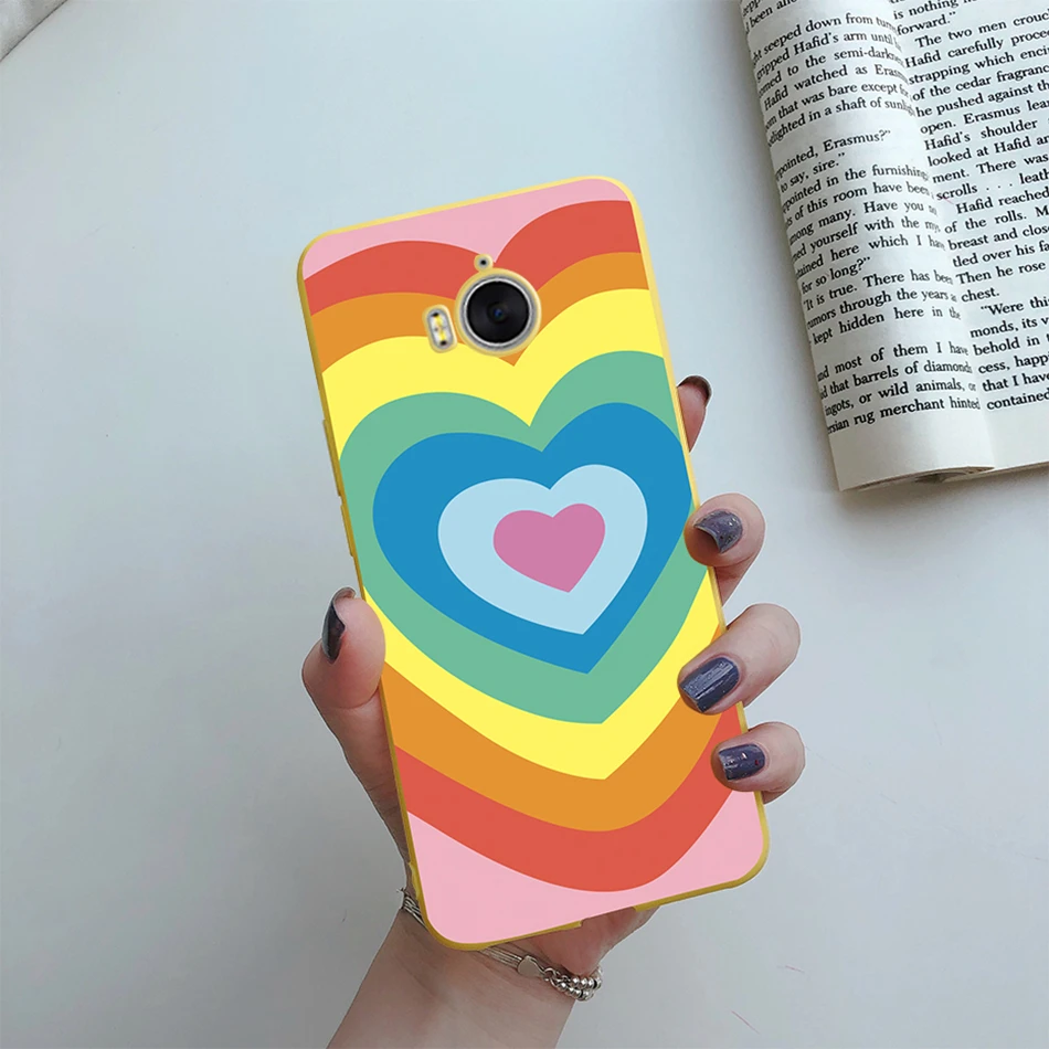 Радужный, яркий, силиконовый чехол для Huawei Y5 2017, Женский чехол с милым сердечком, задняя крышка для Huawei Y5 Y6 2017, чехлы для телефонов