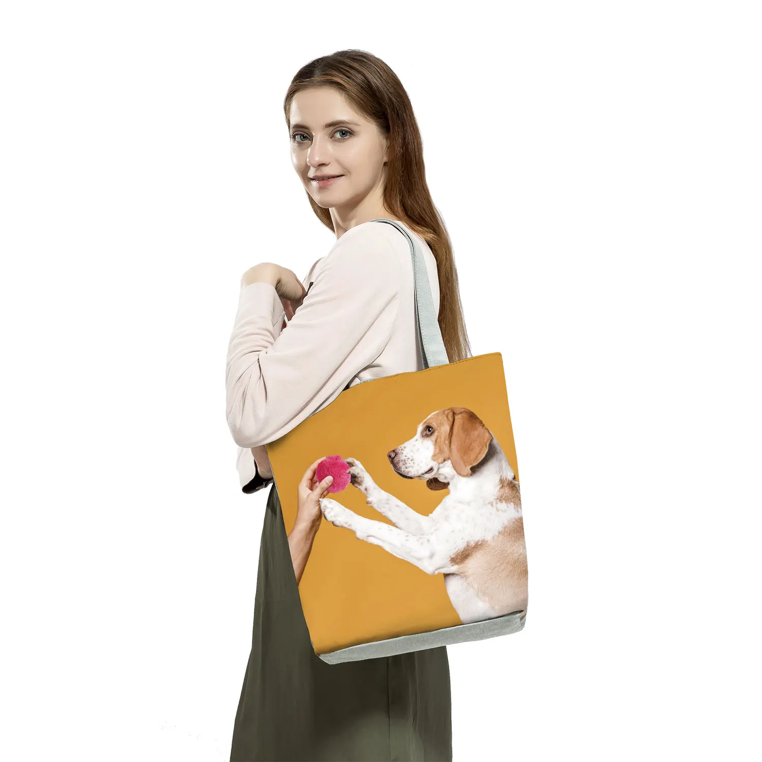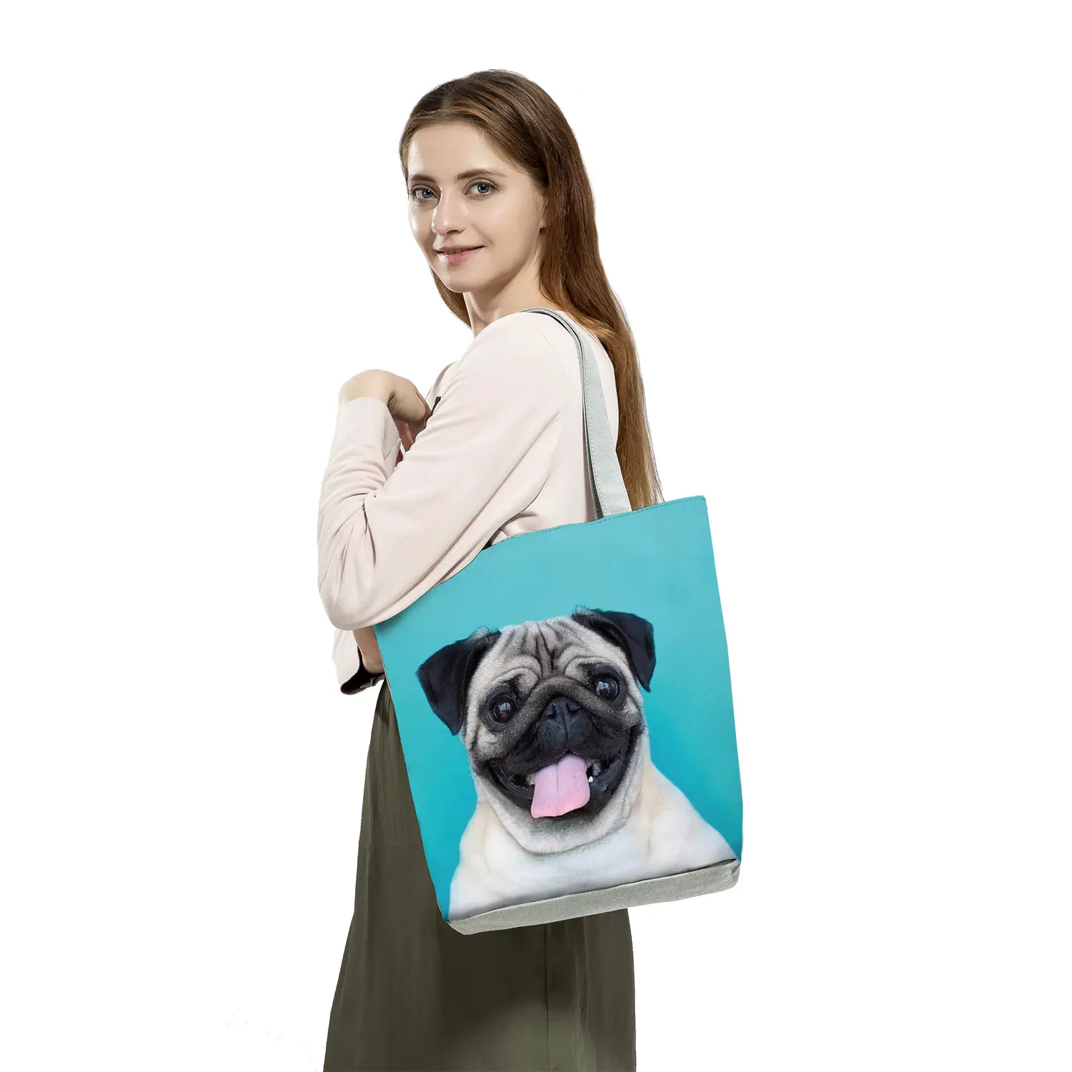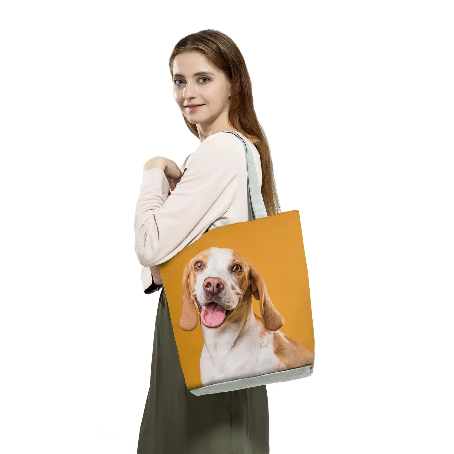 Вместительные сумки с животным дизайном, женская сумка с принтом собаки, сумка-шоппер, сумки для офиса, многоразовые повседневные сумки на плечо с индивидуальным узором
