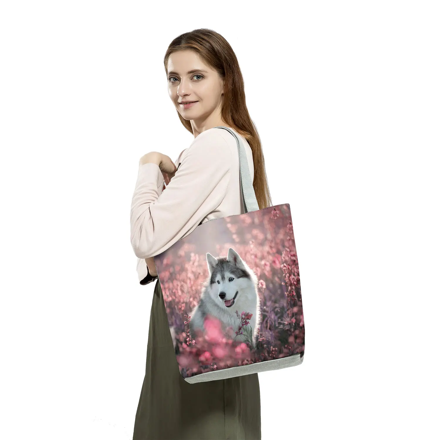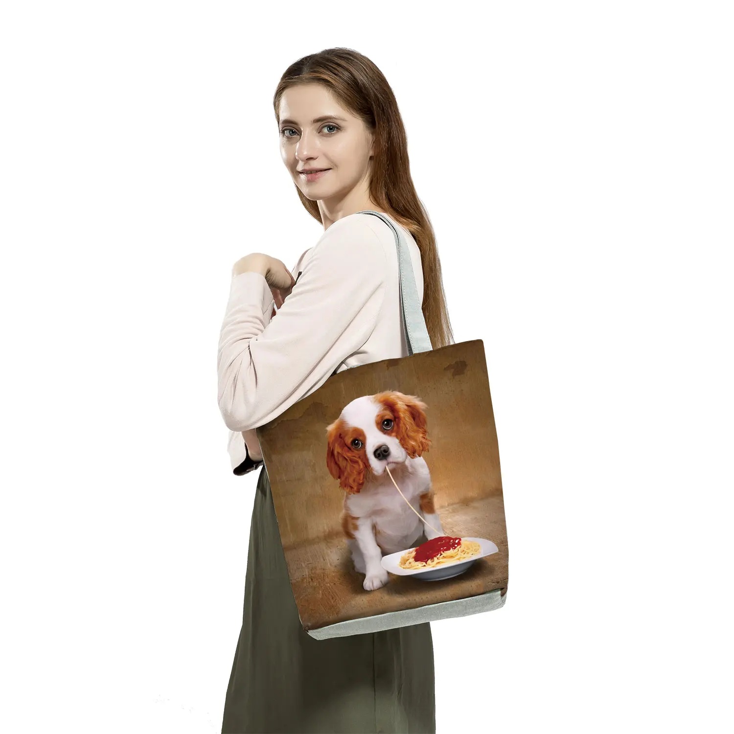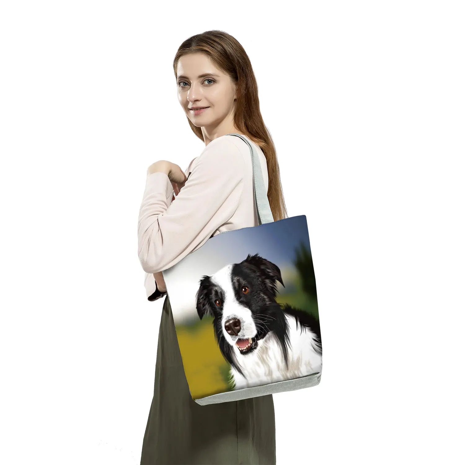 Вместительные сумки с животным дизайном, женская сумка с принтом собаки, сумка-шоппер, сумки для офиса, многоразовые повседневные сумки на плечо с индивидуальным узором