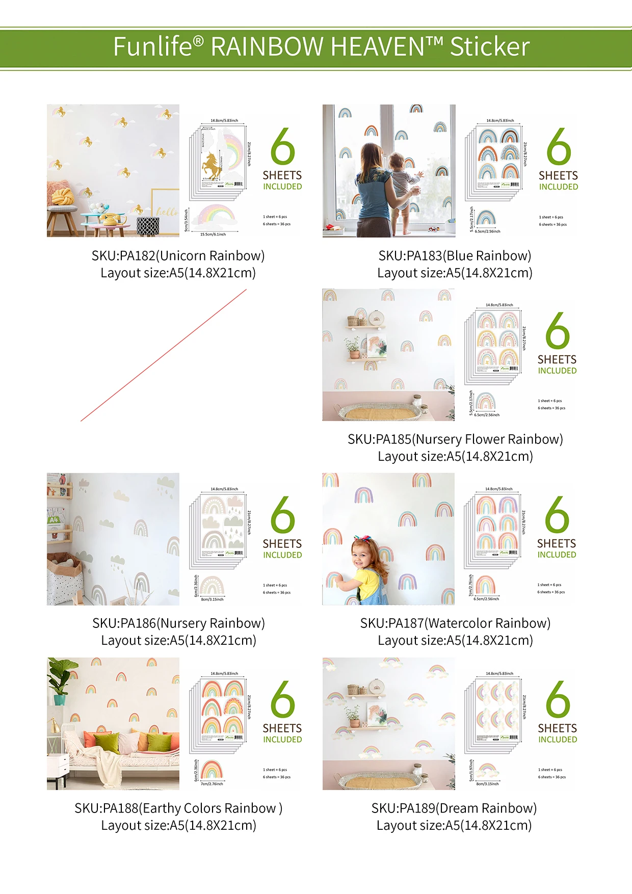 Добро пожаловать в магазин FunlifeРуководство по эксплуатации:Товар: наклейки на стену с изображением радугиМатериал: экологически чистый нетоксичный ПВХВес изделия: 60 гДоступные цвета: цветныеПримечание: подходит для стен (и сухой, гладкой, без пыли поверхности)Характеристика: Этот продукт поставляется только с самоклеющимся виниловым листом. Вам просто нужно очистить и приклеить его к стене, никаких инструментов не требуется, легко для ручки!Характеристики:Украшают внутренние стены, окна и мебель и будут придерживаться самых твердых, гладких, чистых поверхностей, таких как зеркала, металл, дерево и стены. Легко наносится, удаляется, перемещается и повторяется, не оставляя повреждений или остатков. Идеально подходит для сухой, чистой и гладкой поверхности. Вы даже можете изготовить самодельные изделия, поместив их на плитку или окрашенную доску.
