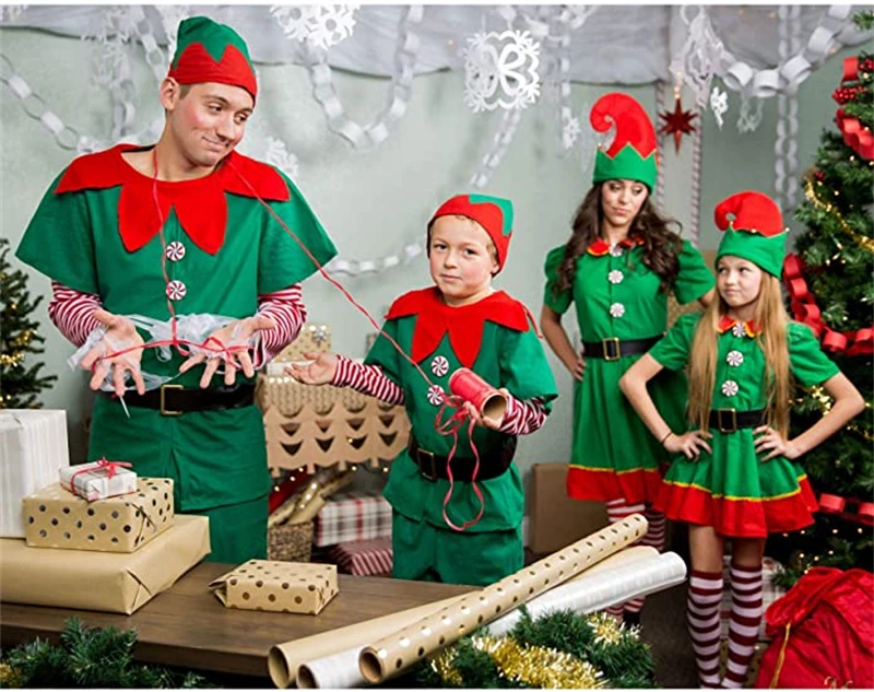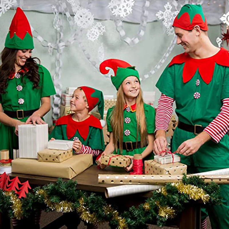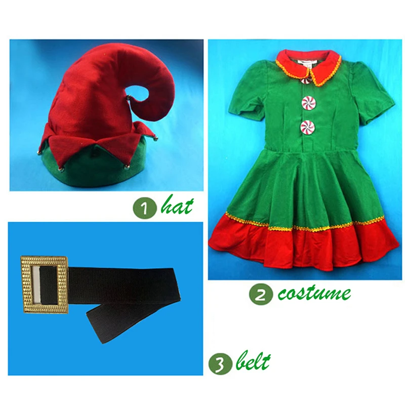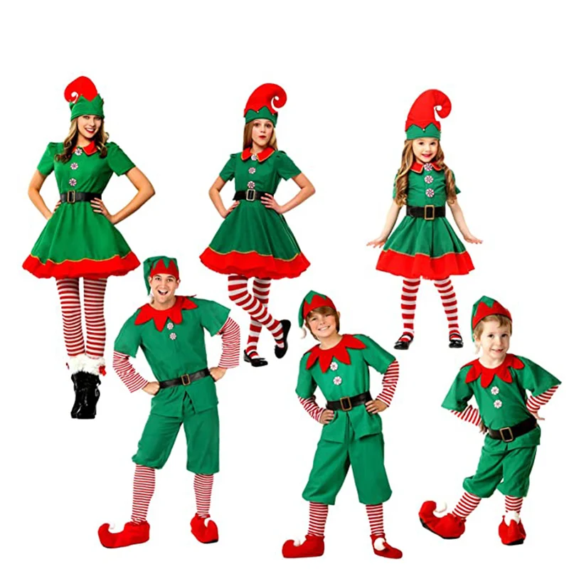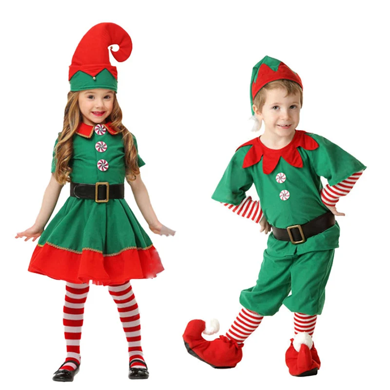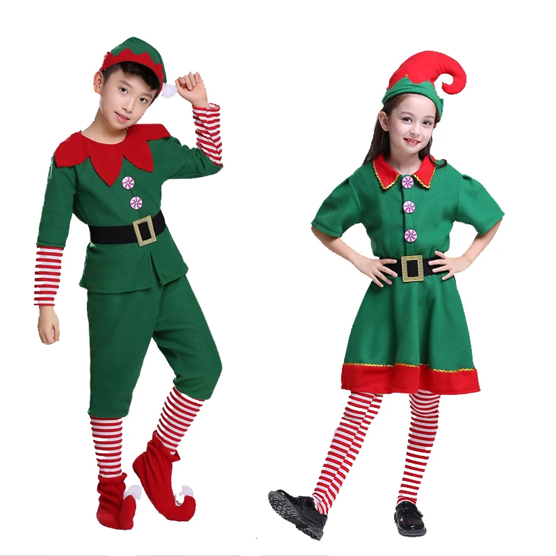 Рождественский эльф косплей Хэллоуин костюмы для детей мальчиков девочек платье с шляпой обувь подарок на Новый год карнавал вечерние Санта-Клаус