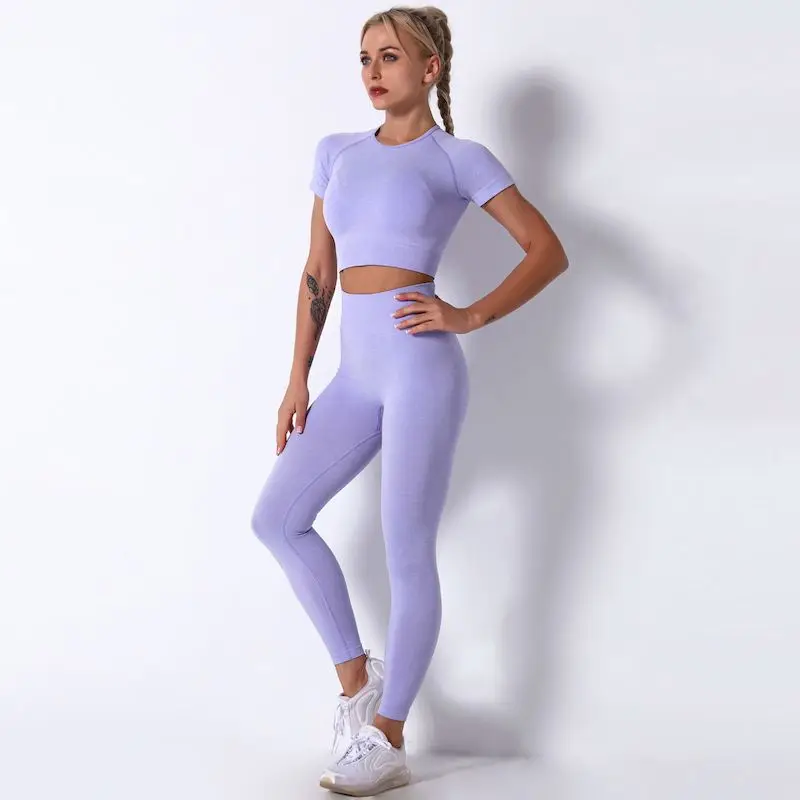 Бесшовные комплекты для йоги, женская летняя популярная однотонная ...