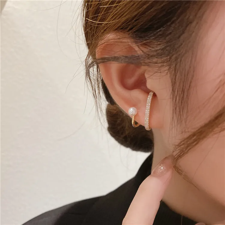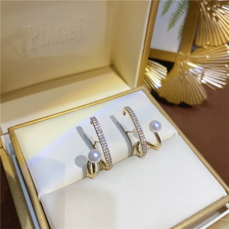 Корейские новые модные ювелирные изделия, медные инкрустированные фианитами, буквы U, двойные жемчужные серьги, необычный подарок для девушки, женские повседневные рабочие серьги