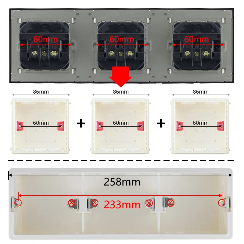 Installation box requirements3pcs 86 Type or 1pcs 258 Type installation box