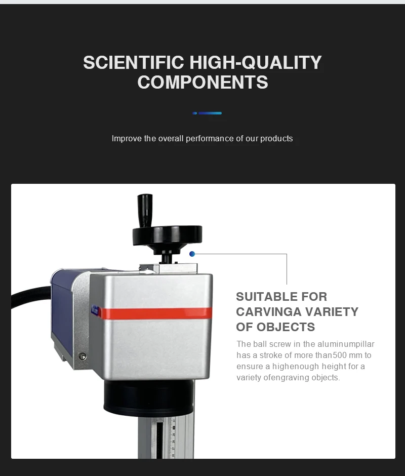 Шариковый винт в алюминиевой колонне имеет ход более 500 мм, чтобы обеспечить достаточно высокую высоту для различных объектов гравировки. Lmдоказательство общей производительности нашей продукции. Подходит для различных предметов carvinga.