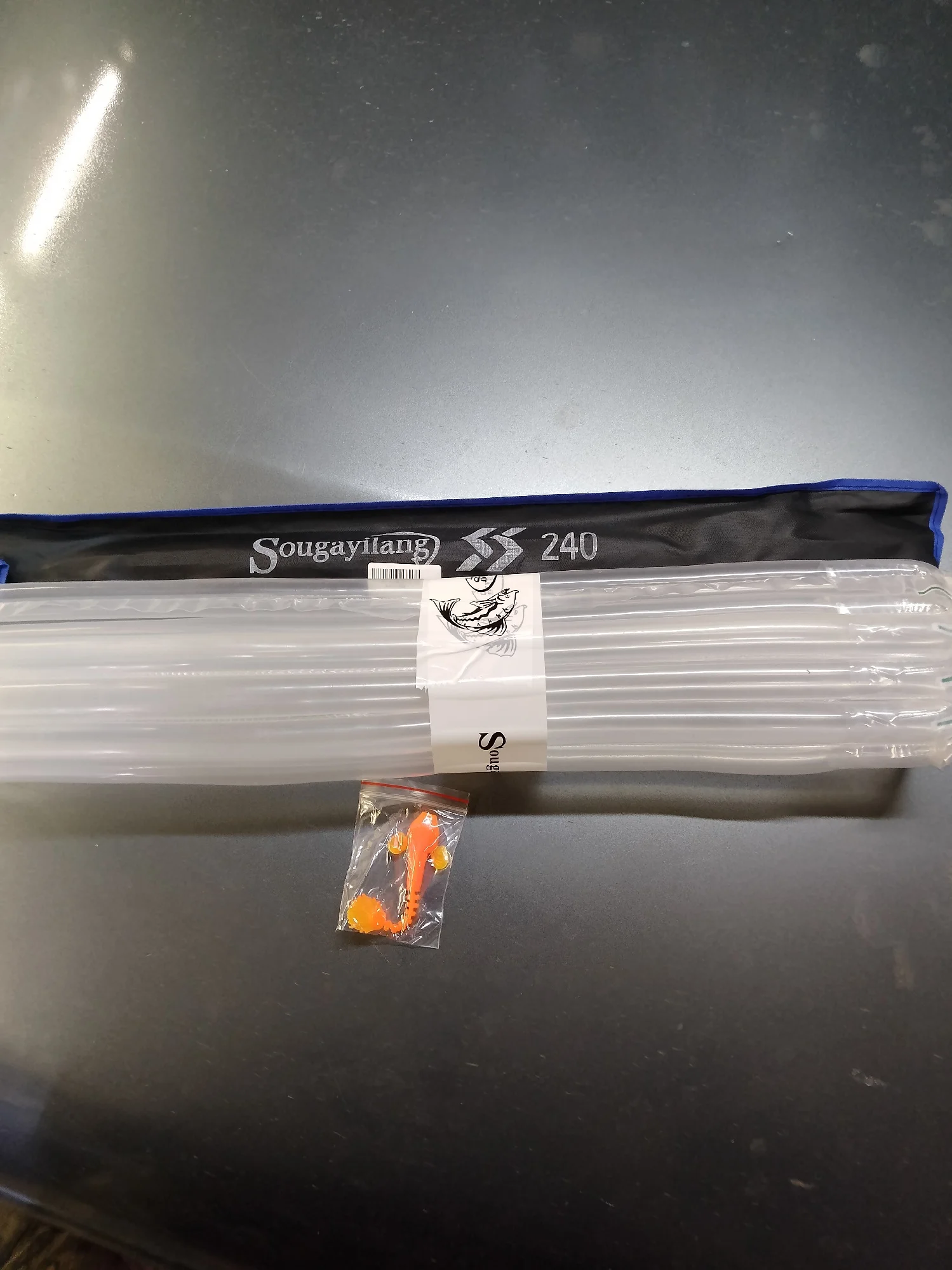 Шустрая доставка в постамат. Упаковано в 2 слоя пупырки + пакет + скоч+ собственный чехол, вершинка даже в колпачке проложена пенопластом. Сам спиннинг выполнен достаточно качественно, немного коротковата ручка, но учитывая складной вариант, это приемлемо. Фактическая длина немного меньше заявленной в 240см, но не критично. Строй средне-быстрый. За 673₽ отличный компактный лёгкий вариант.