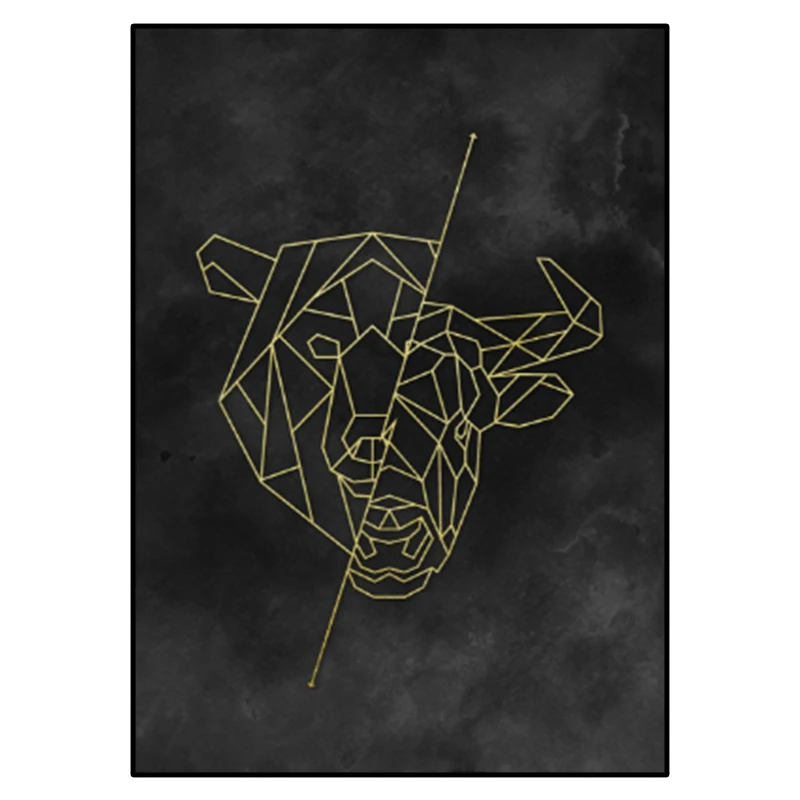 Плакат и печать со стоимостью быка и медведя, современный офис, дом...