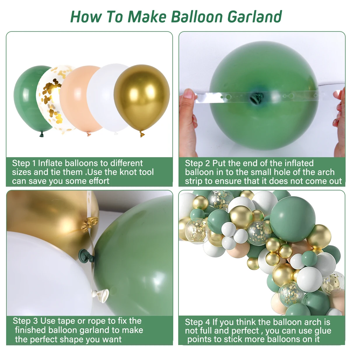 Зеленая гирлянда с воздушными шарами, дневная яркая гирлянда из лат...