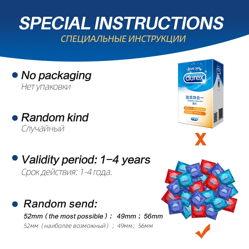 4. Мы гарантируем, что все они являются подлинными продуктами durex.5. Они не включают коробки, но они действительно экономически эффективные продукты.
