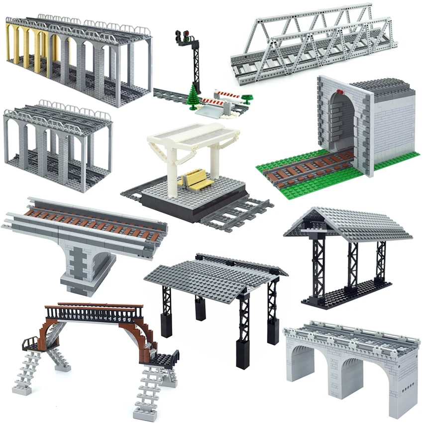 Конструктор MOC, детали для города, поезда, моста с треками, железн...