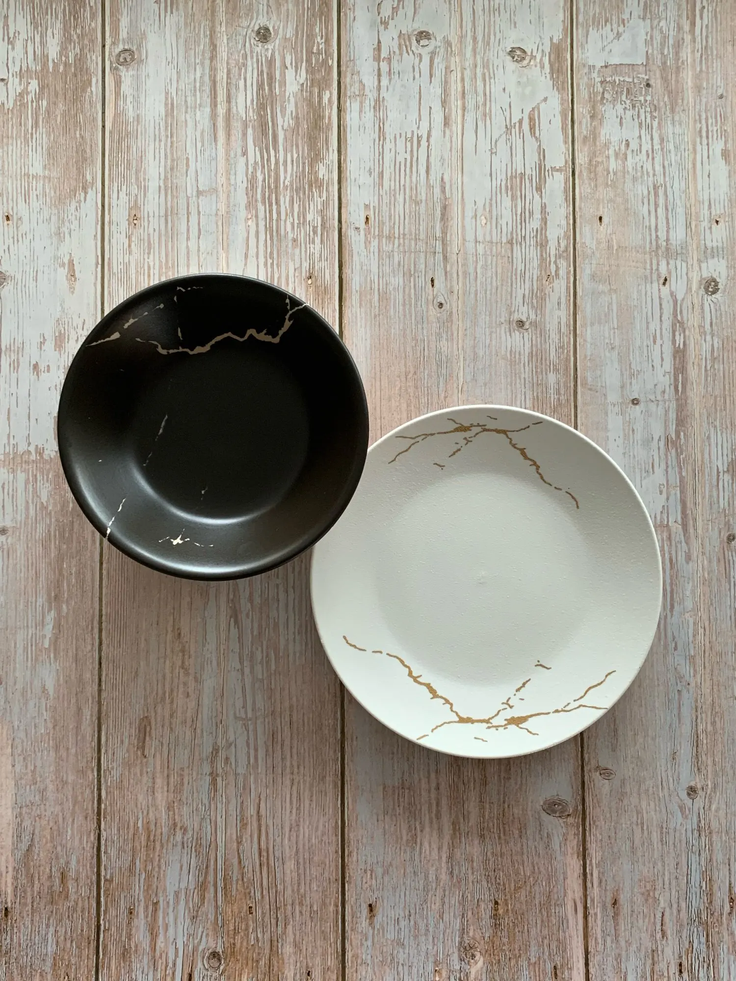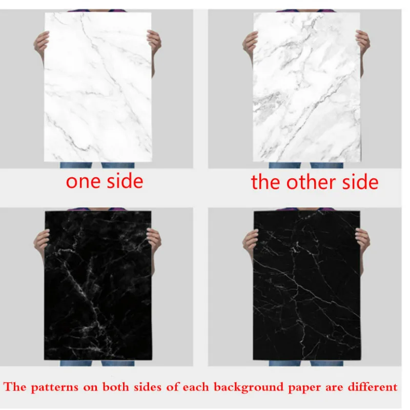 Белая сторона мрамора соответствует фотографии, но черный слегка голубоватый.