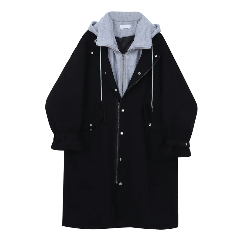 Женское зимнее пальто-Тренч с капюшоном и хлопковой подкладкой