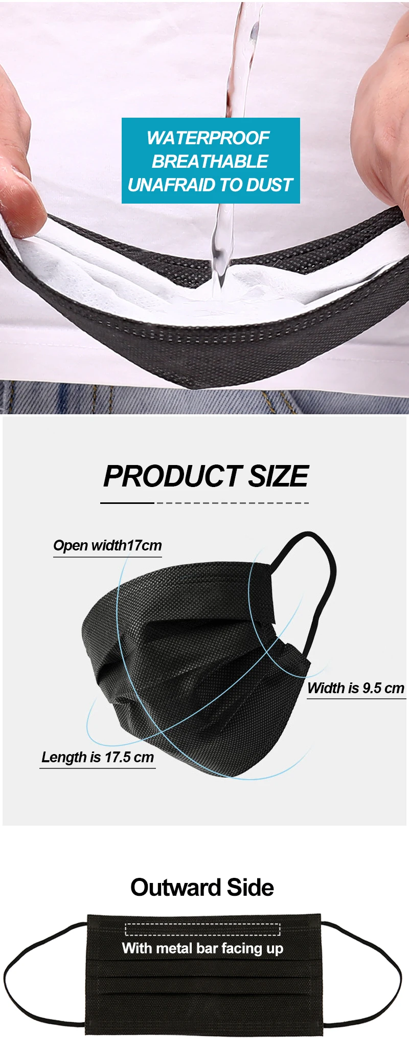 Одноразовая черная маска для лица, 3-слойная защитная дышащая маска...