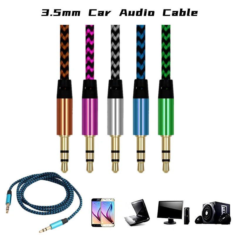 1 м 3,5 мм Автомобильный нейлоновый кабель Aux штекер-штекер автомобильный аудиокабель линия динамика для автомобильного динамика наушников Xiaomi Huawei