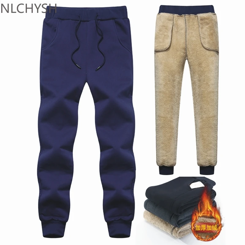Thicken Pants Men Warm TrousersThick Wool Joggers Fleece Trousers