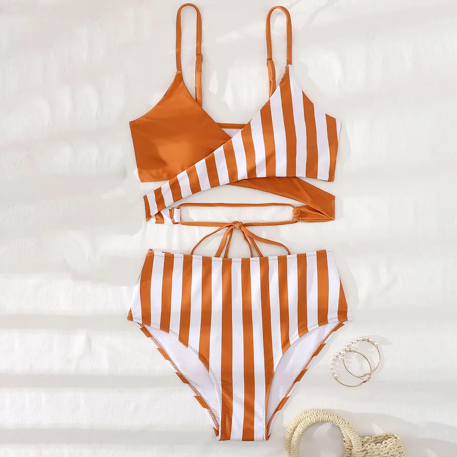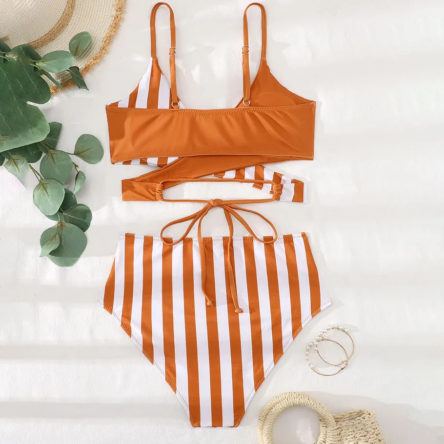Купальник-бикини в полоску, комплект из двух предметов, лямка для плавания, Пляжная Спортивная Вечерние