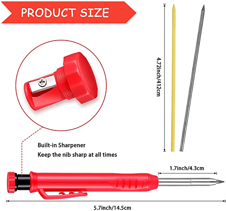 Твердый плотничный карандаш, набор со встроенной точилкой, механический карандаш, деревообрабатывающий карандаш, механический карандаш