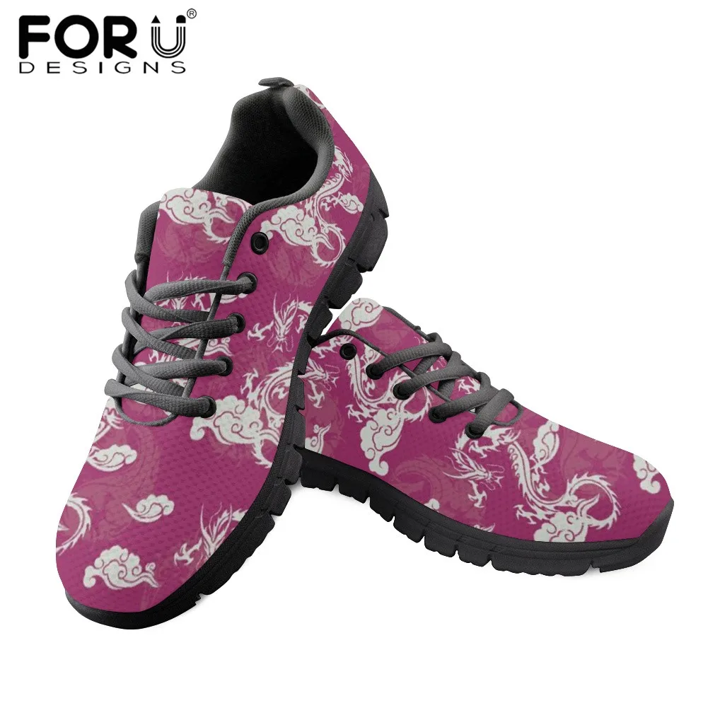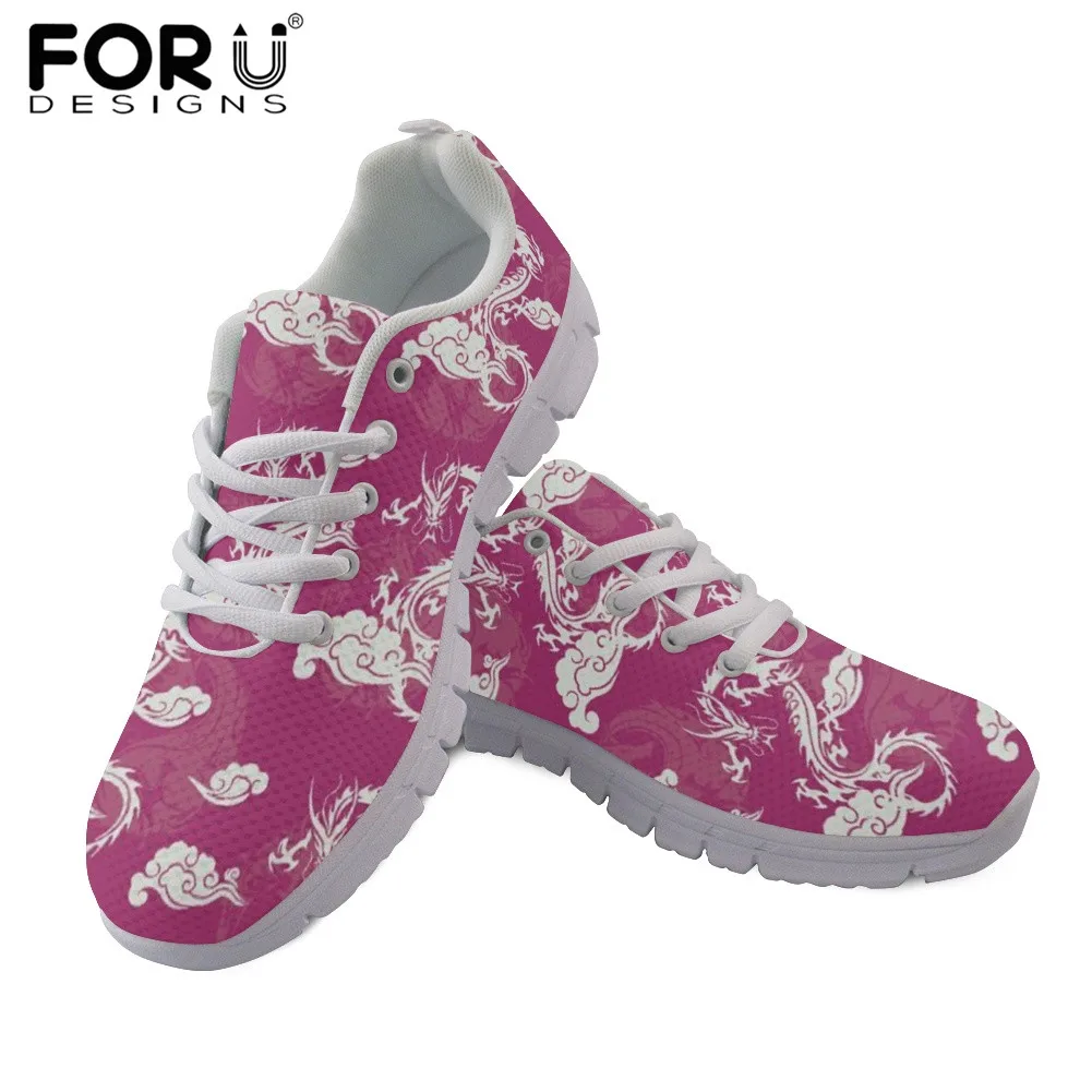 Женские туфли на плоской подошве FORUDESIGNS, с рисунком китайского дракона, повседневная обувь на шнуровке, женские дышащие сетчатые кроссовки, прогулочная обувь