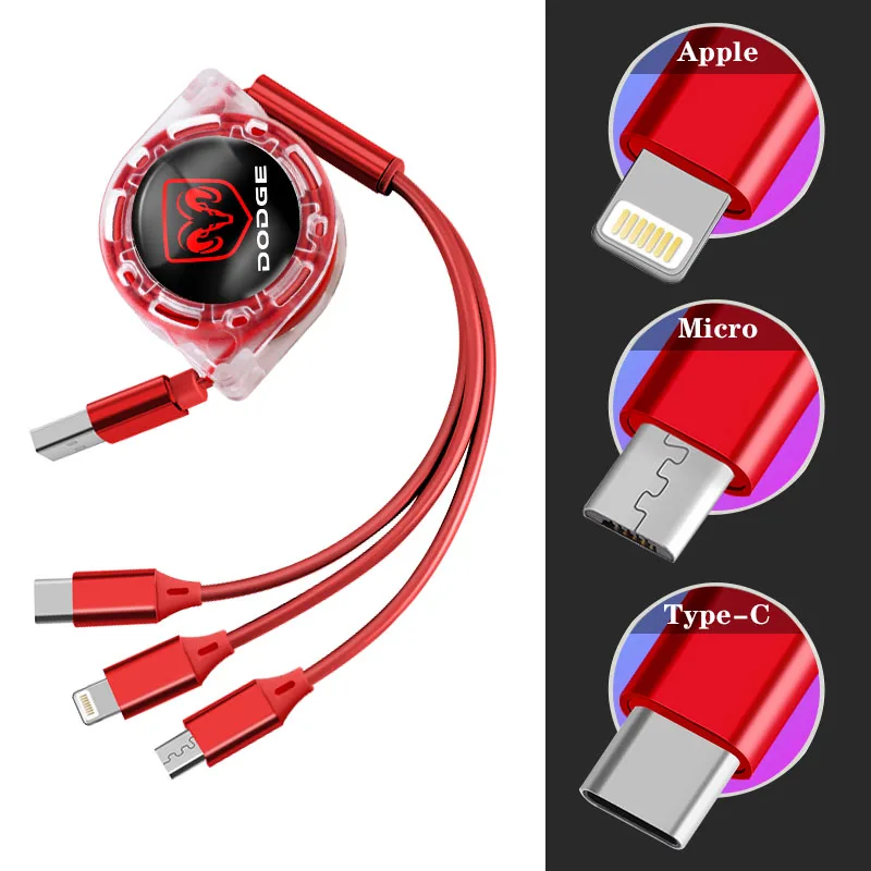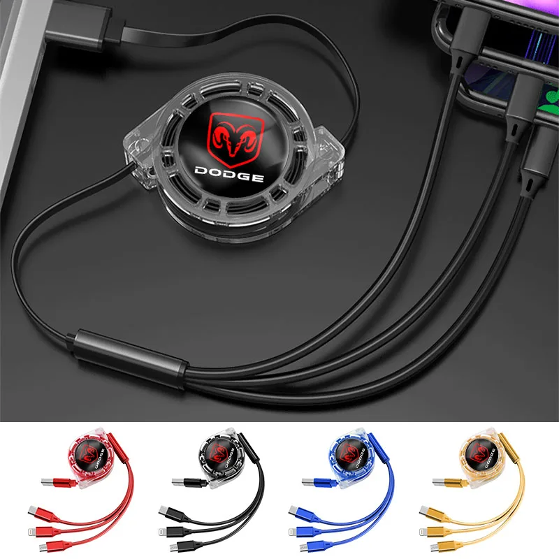 Выдвижной зарядный кабель для телефона 3 в 1 с логотипом автомобиля для Dodge Journey Charger Challenger Caliber Nitro Durango Мститель Дротика Ram 1500