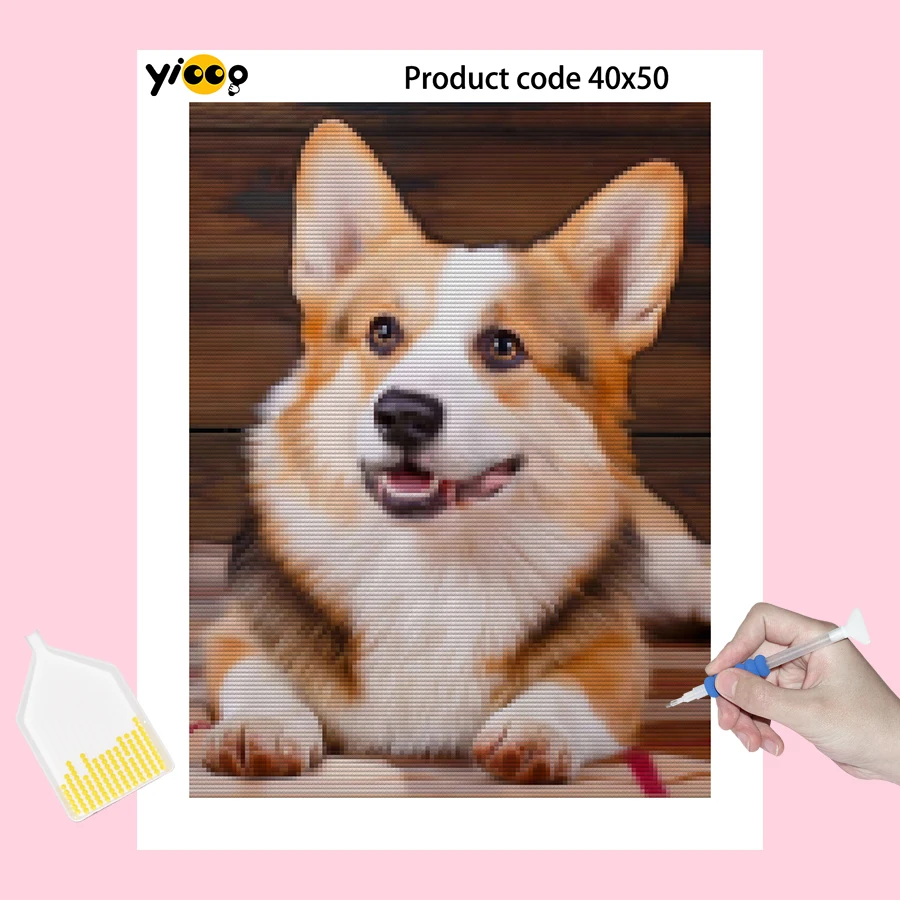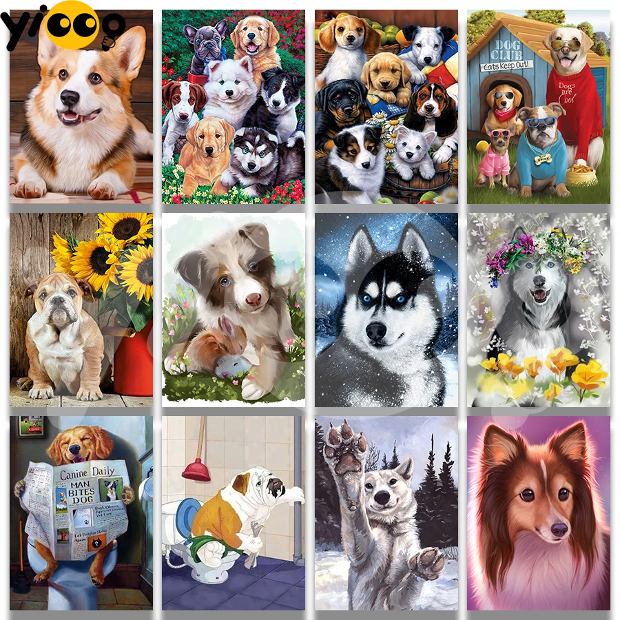 Полноразмернаякруглая Алмазная вышивка, Хаски, корги, бульдог, лабрадор, 5D алмазная Бриллиантовая фотография, подарок для домашнего декора