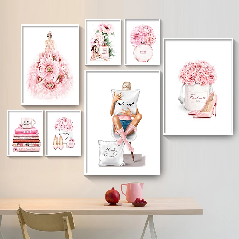 Модный розовый декоративный постер для комнаты для девушек, искусст...