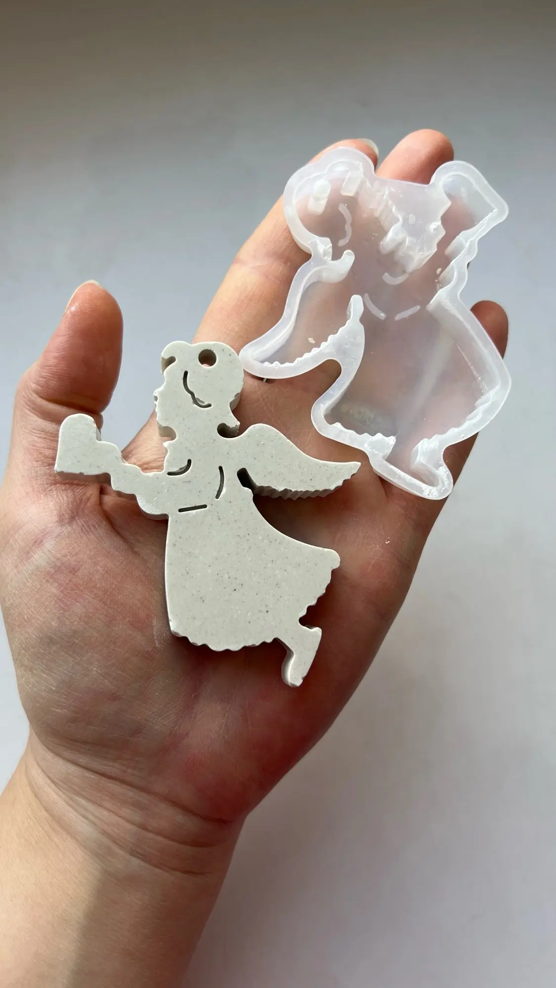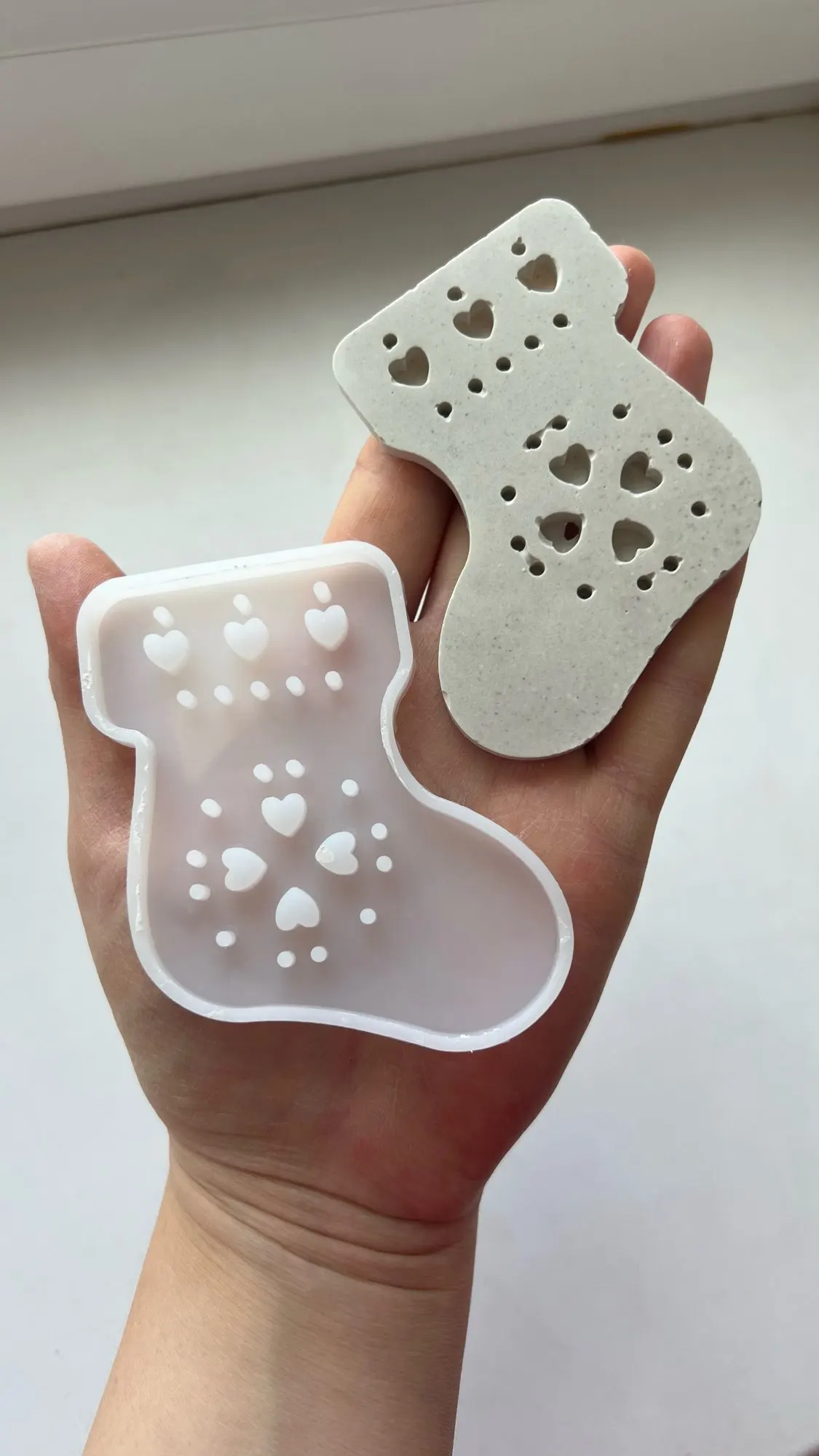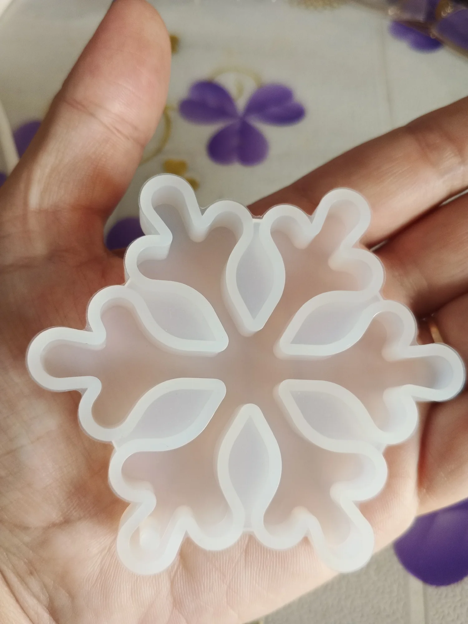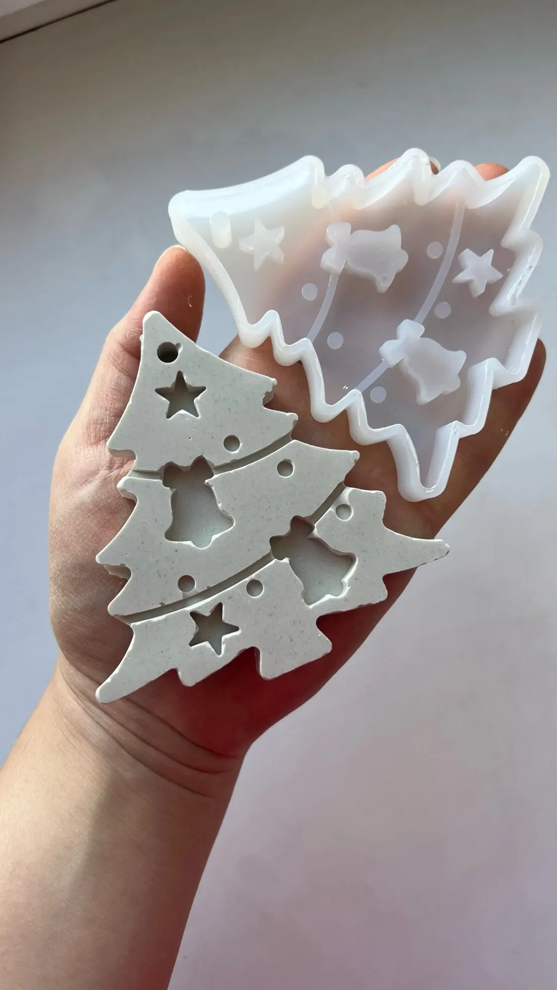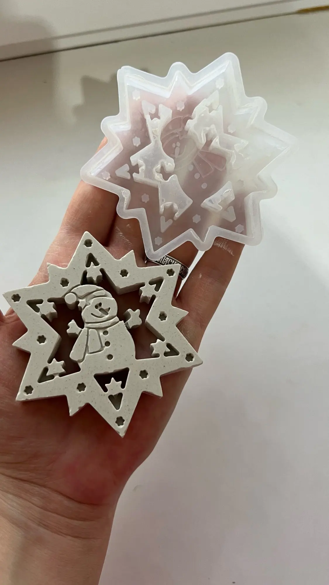 Звёздочка очень красивая, но сложная в заливке. Очень много мелких деталей, с гипсом трудно работать. Она очень мягкая, хорошо вынимается, но из-за хрупкости гипса, детали обламываются. Тут нужен какой-то другой материал. И ещё сложность залить без пузырей. Пока все углы обработаешь с ума сойдёшь. А так конечно она мне больше всех понравилась. Я бы хотела такие звёзды себе на ёлку. Буду придумывать, как их уплотнить.