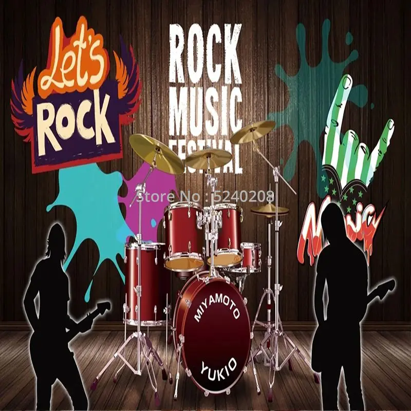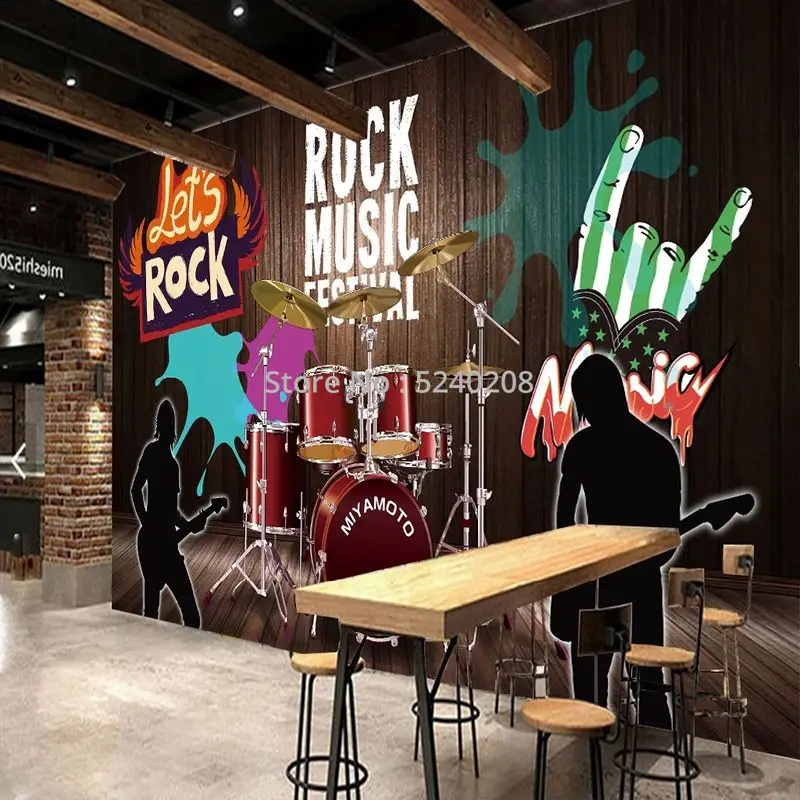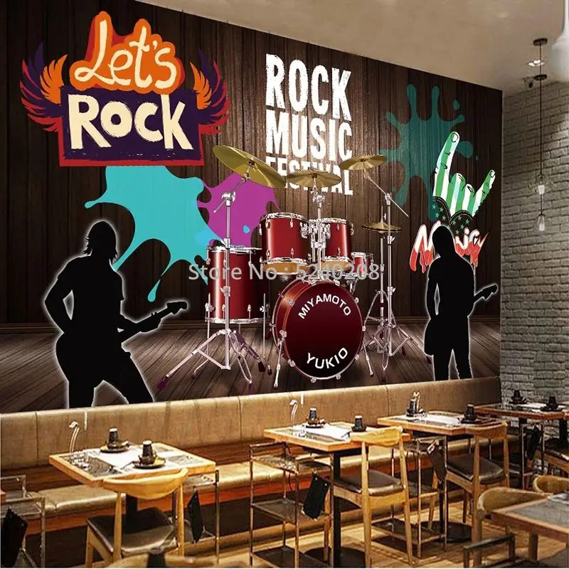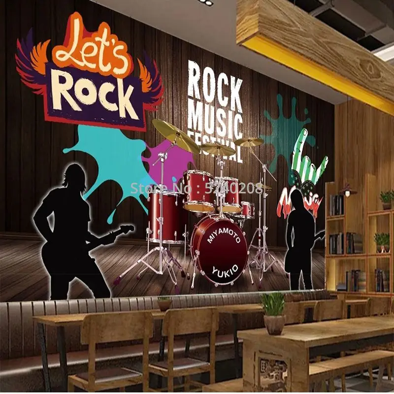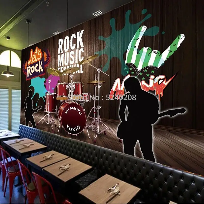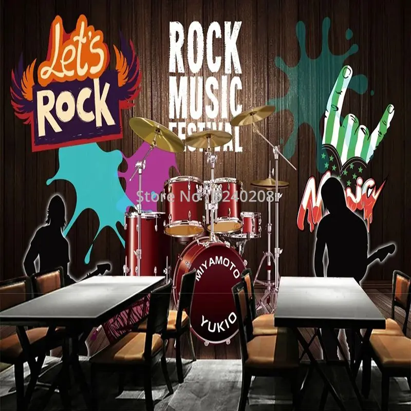Пользовательские 3D обои любого размера, самоклеящиеся обои в стиле ретро, деревянные доски, стерео, рок, музыка, бар, KTV, фон, бумажные обои, Стикеры