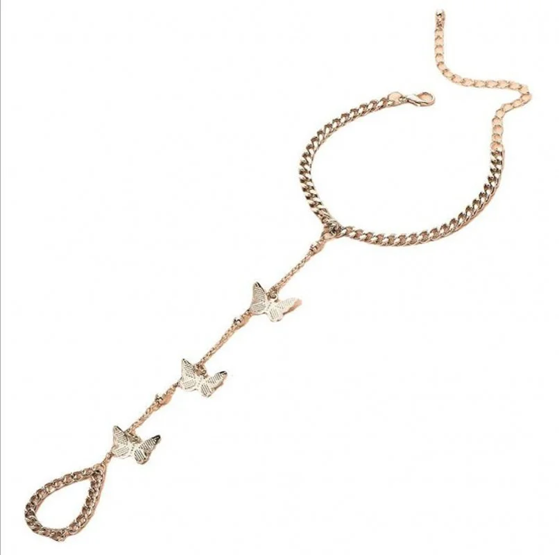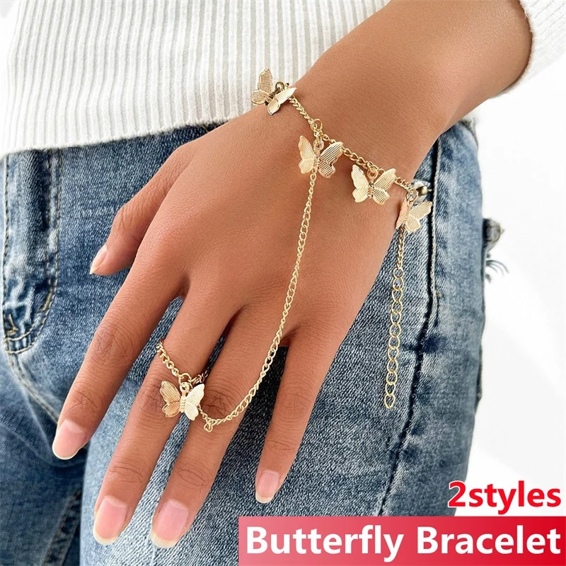 Винтажный браслет с кольцом на палец звено золотой бабочки на запястье простая цепочка для женщин Подвески Женская трендовая эстетика 2021 ювелирные изделия
