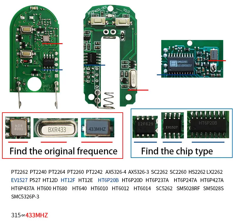 2260 (все производители);2262 (все производители);PT2264, 5326 (все производители);SC5262, HT600, HT680, HT6207, HT6010, HT6012, HT6014, SMC918series,527 (все производители);1527 (все производители);2240 (все производители);HCS101, HCS200 \ HCS201 (код детали),HCS300 \ HCS301(), часть микрокомпьютера с одним чипом