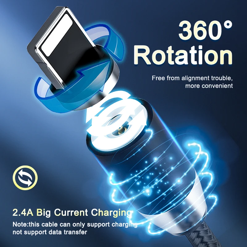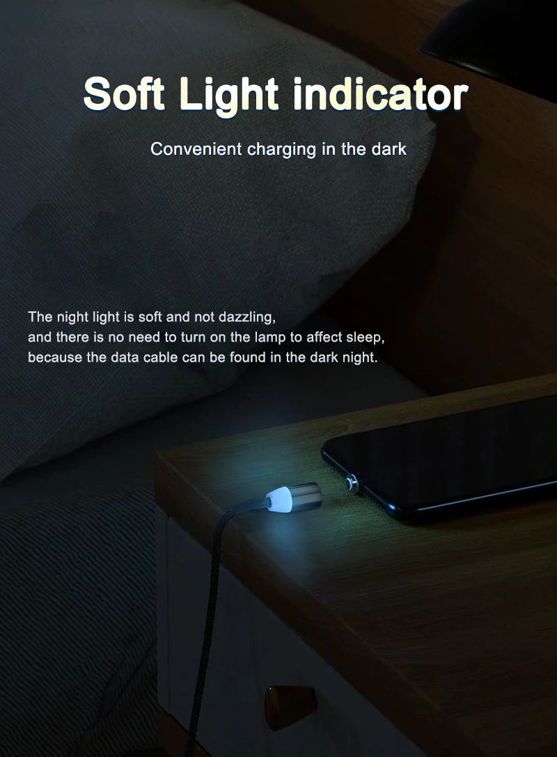 Магнитный USB-кабель 2 м для iPhone 13, 12, 11, Xiaomi, Samsung, кабель типа C, быстрое зарядное устройство со светодиодной подсветкой, кабель Micro USB, шнур, провод