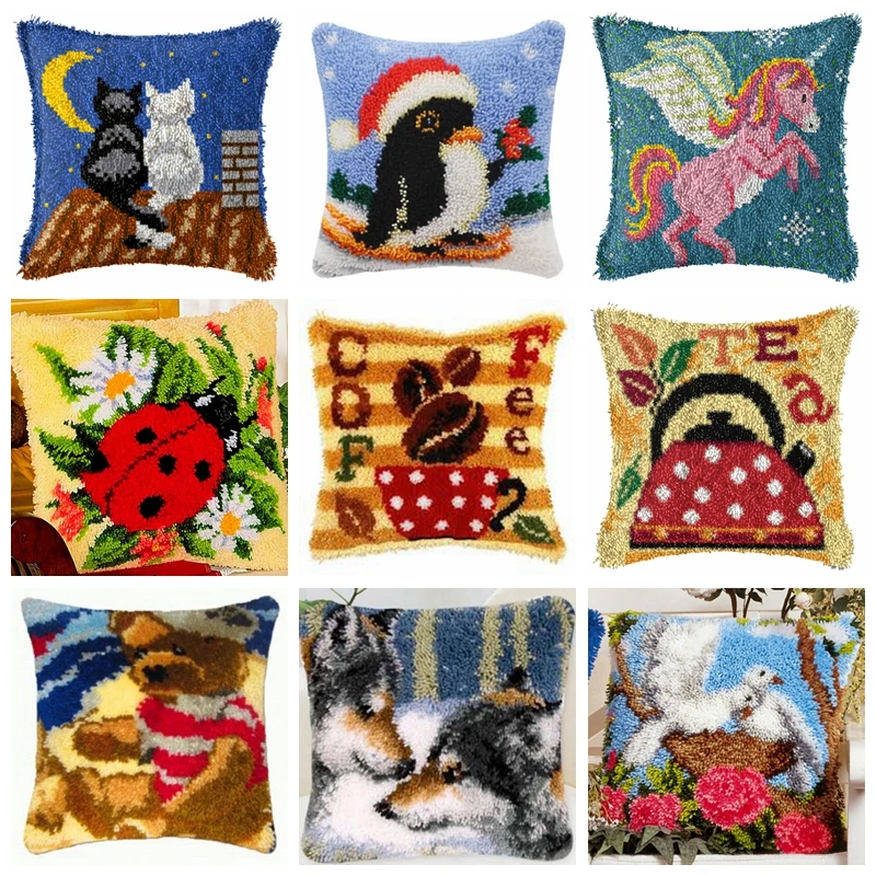 3D сегмент Вышивка Подушка защелка крюк серии животных Защелка Наборы ручной работы принадлежности для ковров подушки для комнаты жаккард деко подушка