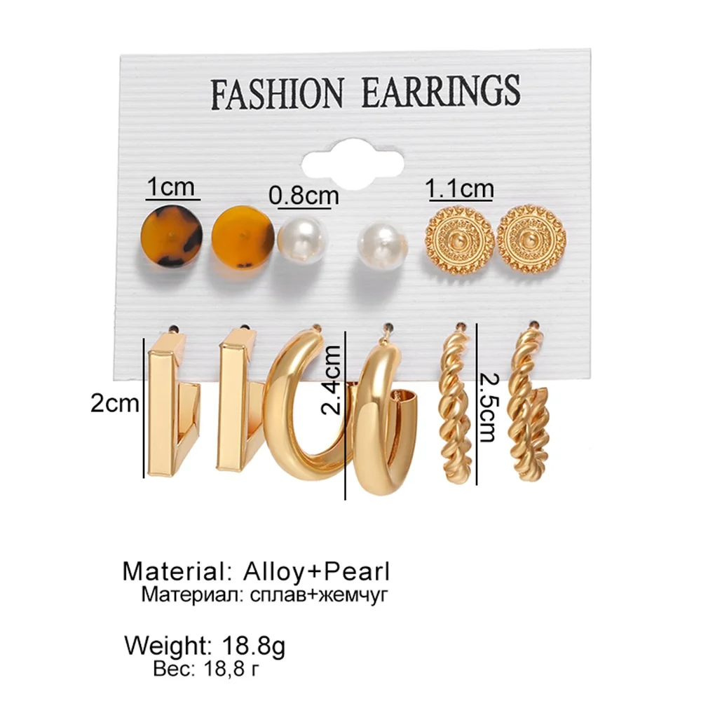 EN геометрические жемчужные серьги-гвоздики Комплект сережек для женщин винтажные золотые металлические квадратные круглые серьги 2021 тренд ювелирные изделия Вечерние