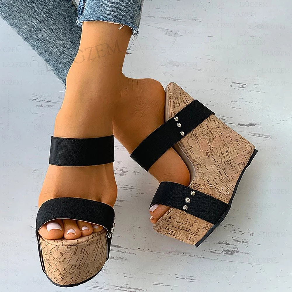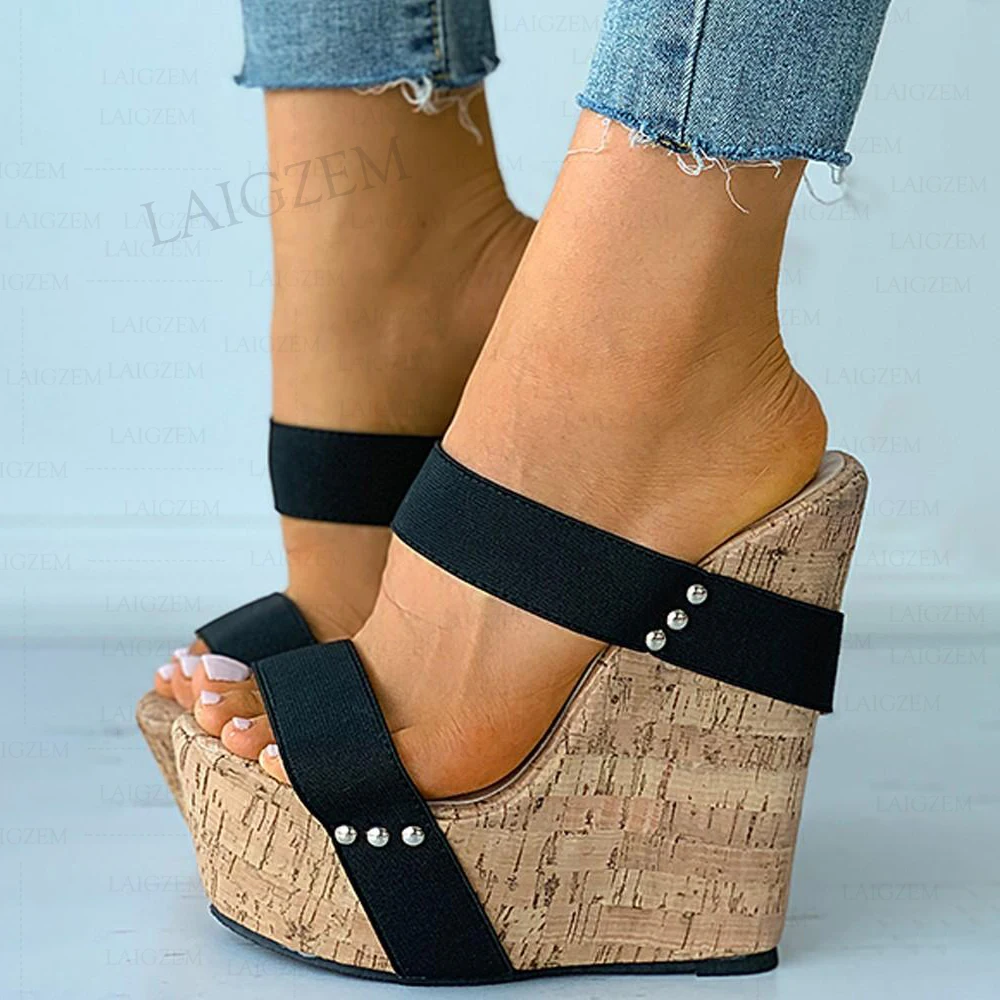 SEIIHEM/женские туфли-лодочки на платформе и танкетке; Босоножки на высоком каблуке без шнуровки с принтом из пробки; Туфли без задника; Женская обувь, увеличивающая рост; Большие размеры 41, 43, 50, 52