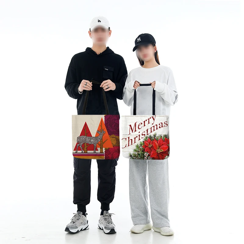 Красивая эко Льняная сумка с принтом рождественской елки, женские сумки, большие многоразовые сумки для магазинов, супермаркетов