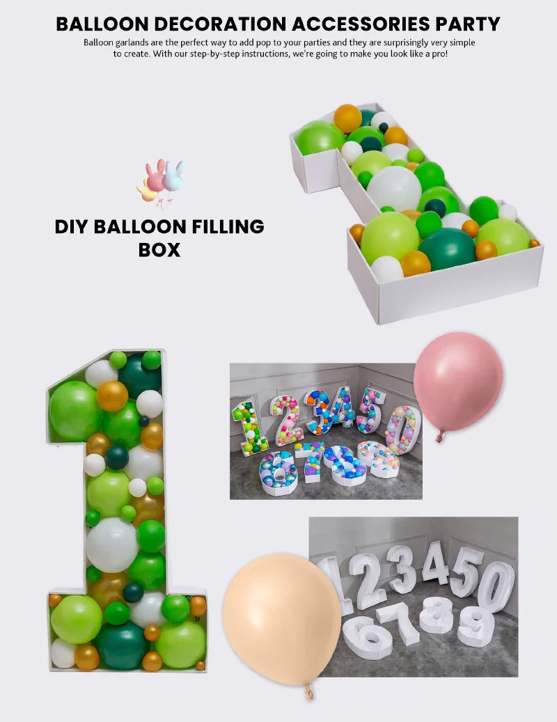 Заполняющая коробка с цифрами для воздушных шаров для детей и взрослых, для дня рождения, первого юбилея, фоторамки с цифрами, с подставкой, мозаика Ohoho