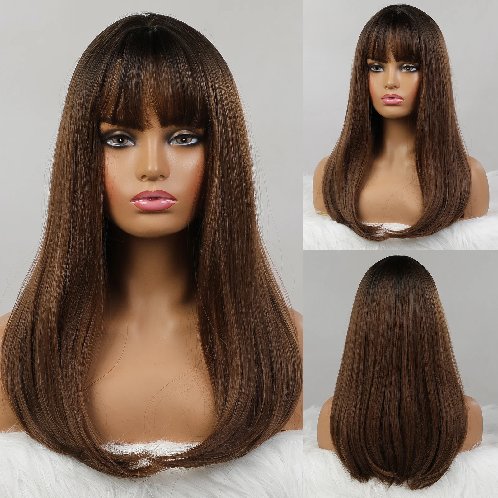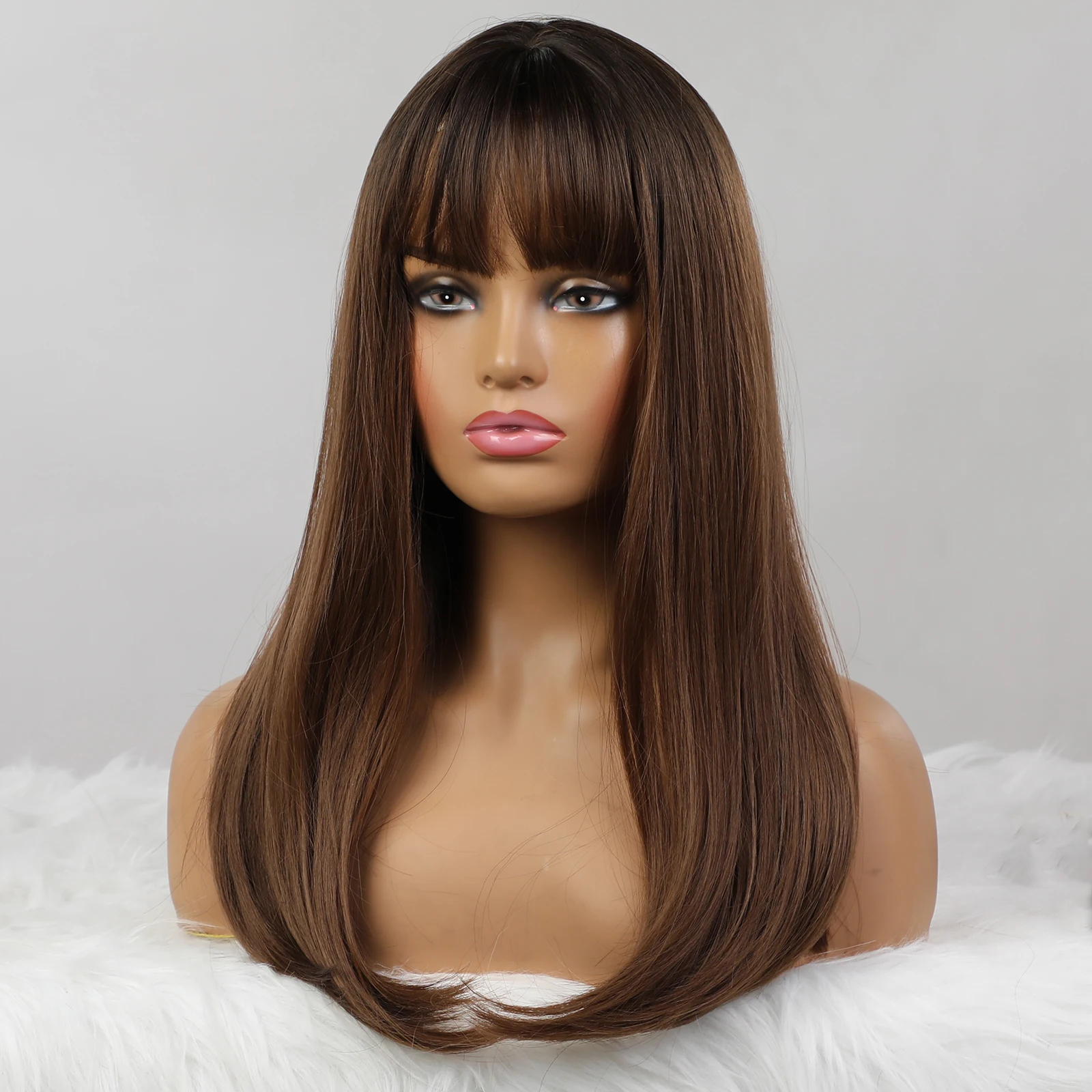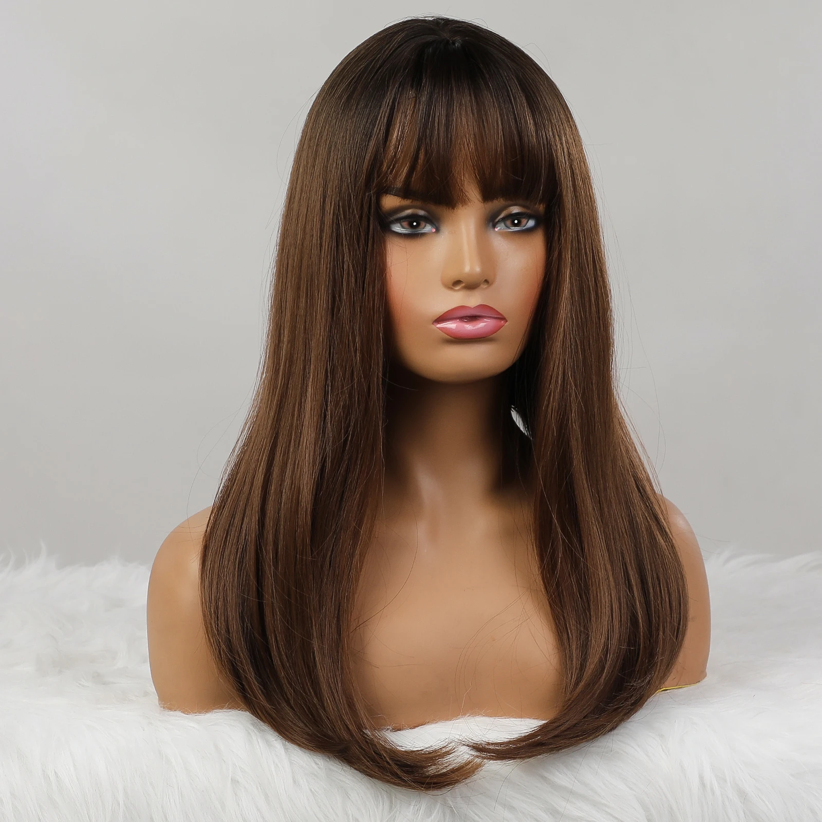 ▶【Style】длинные прямые коричневые парики с челкой для белых/светлых женщин