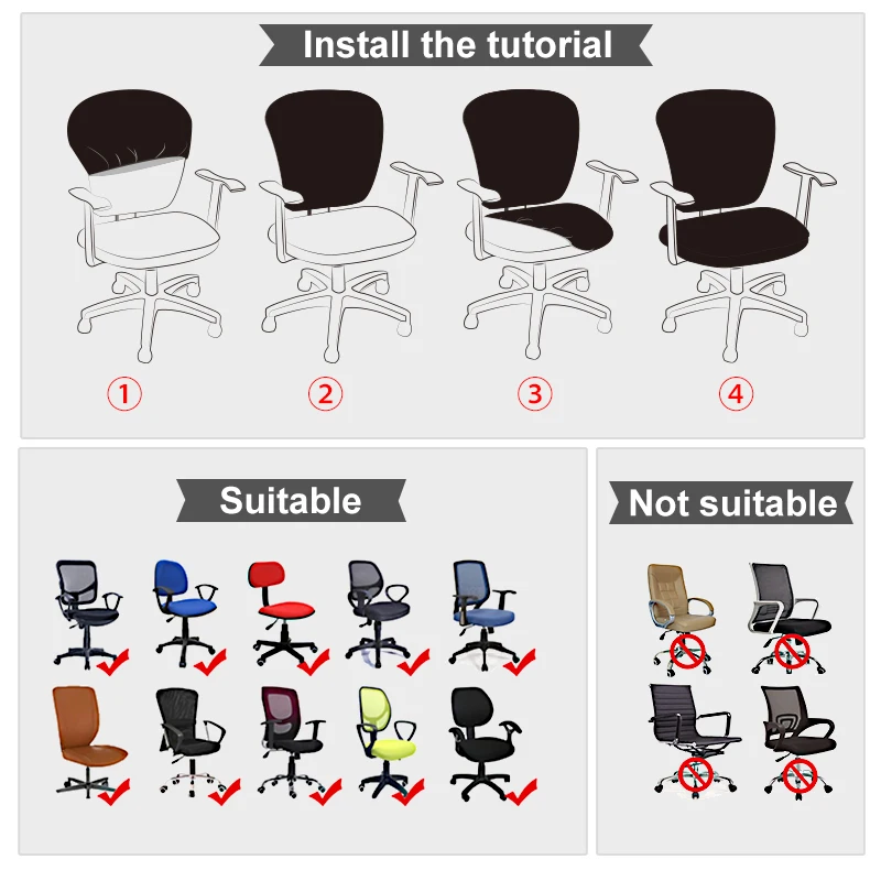 Эластичный чехол для офисного кресла с разрезом, универсальные чехлы для письменных стульев с подлокотниками, Противопыльный вращающийся чехол для кресла