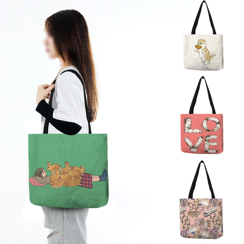 Милые Мультяшные животные кошка кролик Печать Большие Resuable хозяйственные сумки для продуктов женские сумки женские дизайнерские сумки