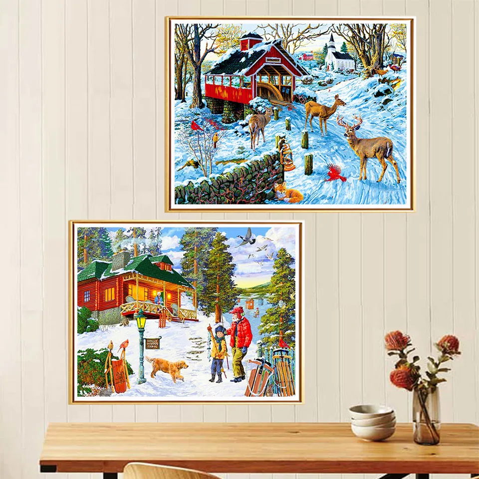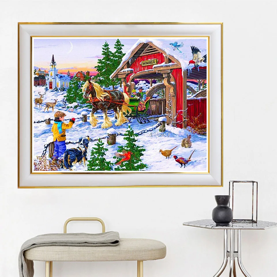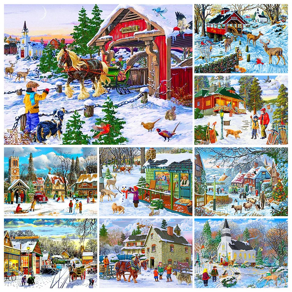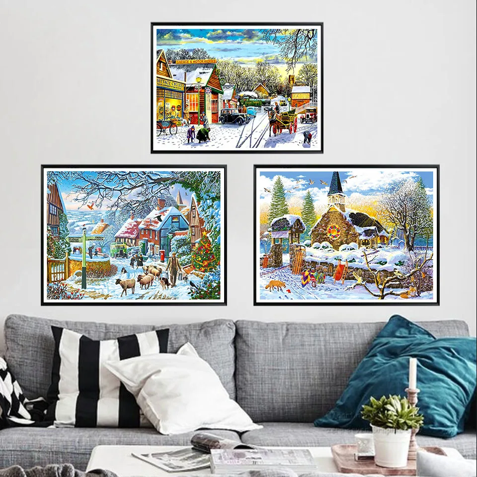 5D алмазная живопись, пейзаж, зимний Снежный пейзаж, городской Алмазная мозаика, Набор для вышивки крестиком, картина стразы, искусство, украшение для дома