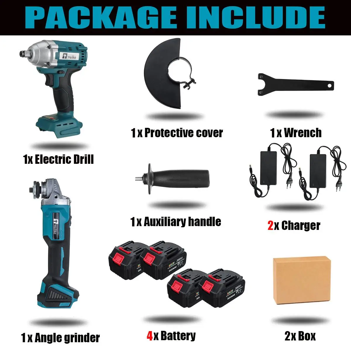 Тип A1 х электрический ключ2 x литий-ионная батареяЗарядное устройство-1 шт.1 х Руководство1 х коробка для храненияТип B1 х электрический ключ4 x литий-ионный аккумуляторЗарядное устройство-1 шт.1 х Руководство1 х коробка для храненияЭлектрический ударный ключ