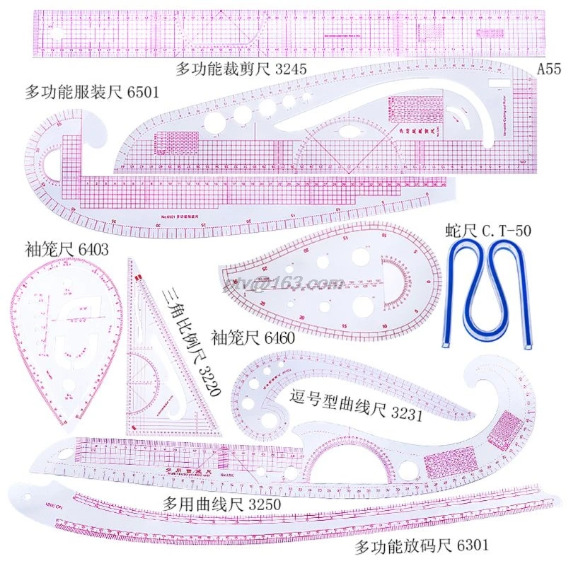 10 шт. практичная швейная французская линейка для вырезания кривых мерок, портной набор инструментов для рисования
