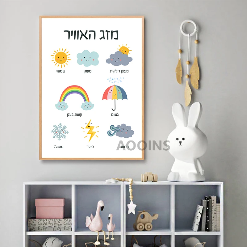 Красочный алфавит, буквы иврита, принты, Еврейская погода, настенная Картина на холсте, картины, скандинавские постеры, декор детской комнаты