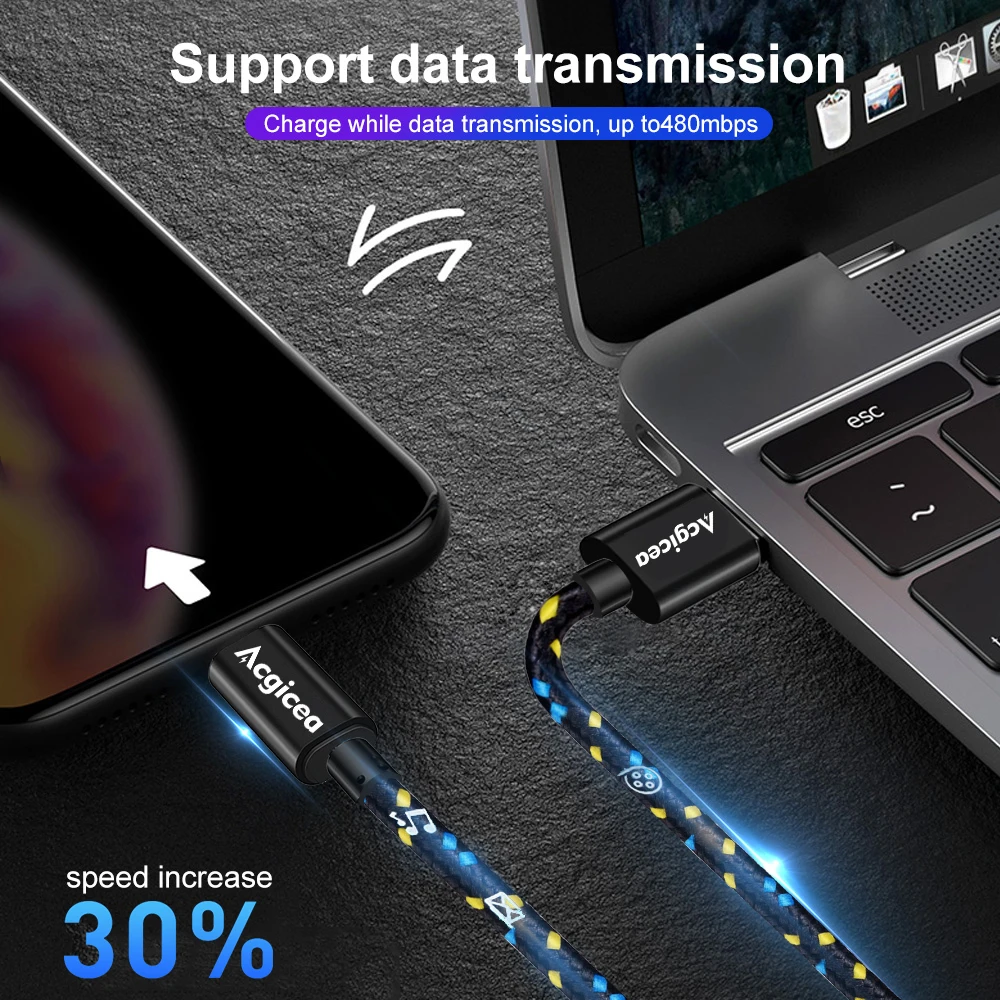 Кабель Acgicea USB Type-C, нейлоновый шнур для быстрой зарядки и передачи данных для Samsung S21, Oneplus 9, xiaomi, Huawei, USB-кабель для быстрой зарядки