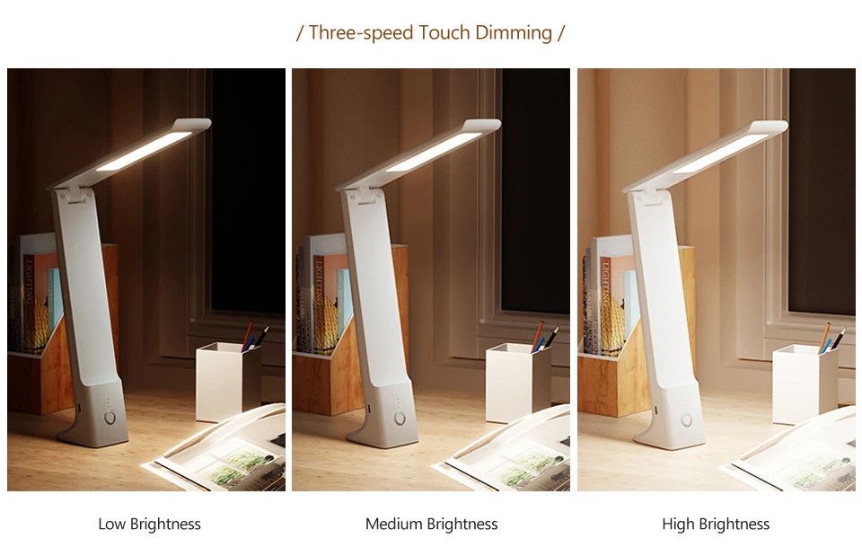 Преимущества продукта: Этот настольный светильник s с 3 пользовательскими уровнями яркости для работы, учебы, чтения или отдыха. Низкое энергопотребление, высокая эффективность и энергосбережение, отсутствие мерцания, отсутствие бликов, мягкий светильник, осветите ваше пространство и Защитите глаза. Отлично подходит для дома, офиса, колледжа, школы; Базовый стиль для мужчин, женщин, подростков, детей, студентов. Светодиодный настольный светильник с регулируемой ручкой и не занимает много места на вашем столе. Когда он не используется, вы можете сложить его на плоской подошве и легко разместить его на полках, сумках, чемоданах, настольных ящиках и других местах. Настольная лампа поставляется с 12-месячной Гарантией и пожизненная техническая поддержка. Если у вас есть какие-либо вопросы, пожалуйста, свяжитесь с нами.