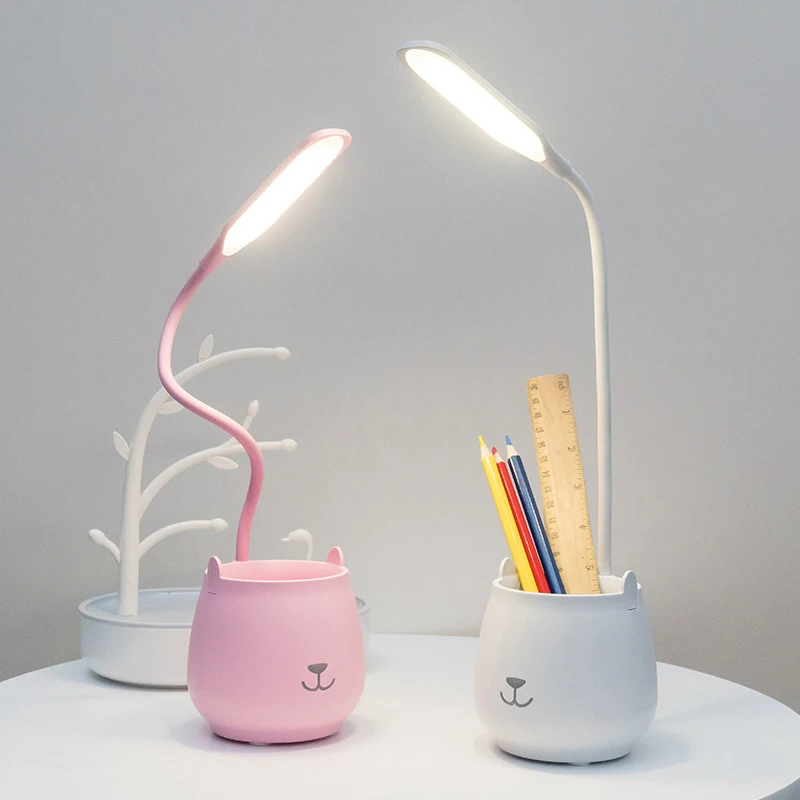 ночник Креативная Светодиодная настольная лампа с кошачьими ушками JUUZNP, настольная лампа с держателем для ручки, 5 в постоянного тока, USB-перезаряжаемая сенсорная настольная лампа для спальни, настольная лампа