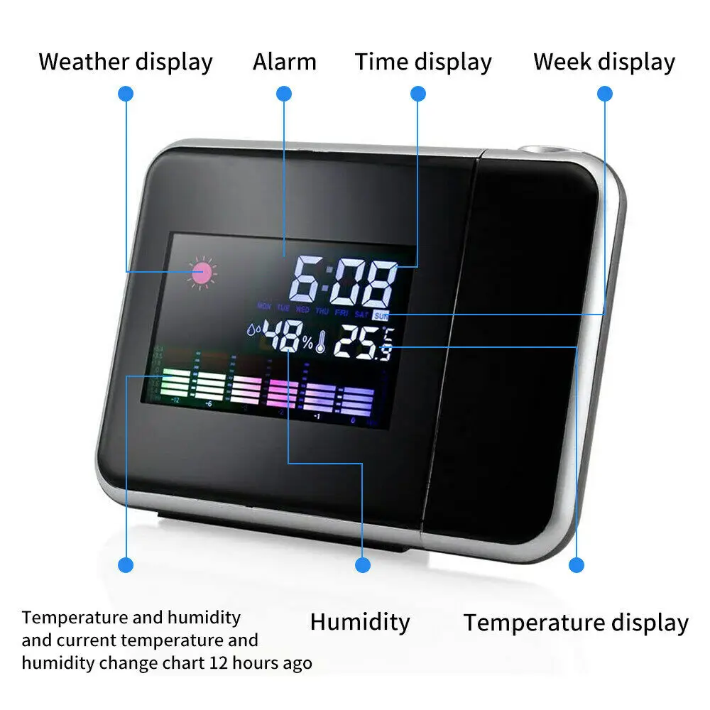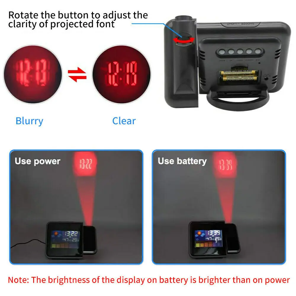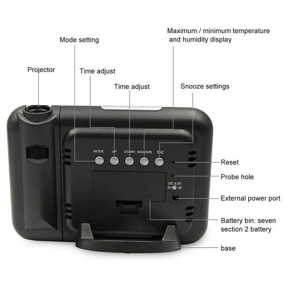 Новинка и высокое качествоНастольный СВЕТОДИОДНЫЙ Цифровой температурный электронный будильник календарь 8190 черныйПроекционный будильник, цифровые часы-проектор на потолке с индикацией температуры в помещении/на улице и термометром, сигнализацией, повтором, Цветной подсветкой,-прогноз погоды и запасной батареей для спальни Функция:1. Функция проекции времени, Расстояние проекции около 1 ~ 5 м, проекция может вращаться под углом 180 °2. Цветной дисплей3. Светодиодная подсветка4. Отображение температуры/влажностиДиапазон отображения температуры: 0 °C ~ 50 °C/32 °F ~ 122 °FДиапазон отображения влажности: 20% RH ~ 99% RH5. Отображение даты: 2011-2099 лет6. Максимальное/минимальное Отображение температуры и влажности7. Будильник/функция сна Спецификация:Тип: проекционный ЖК-будильникЦвет: черный/белыйРазмер: 16*12 смБатарея: 2 * AAA батареи (батарея не включена в этот продукт)Угол проекции: 180 ° РегулируемыйСимвол погоды: солнечный, слегка облачный, облачный, дождливый.Применимые места: кабинет, общественное место, офис, спальня, гостиная, кухня, ванная комната Инструкции по использованию:Установите время:Нажмите и удерживайте Режим в течение 3 секунд, чтобы войти в режим настройки времениКоличество часов мигает и может быть установлено путем установки количества часов вверх или вниз.Нажмите режим снова: мигает минутный номер, который может быть установлен нажатием ing вверх или вниз, чтобы установить минуты. Набор сигнализации:Нажмите режим для просмотра времени будильникаНажмите и удерживайте Режим, нажмите и удерживайте в течение 3 секунд, чтобы войти в режим настройки оповещения.Количество часов мигает и может быть установлен нажатием вверх или вниз, чтобы установить час.Нажмите режим снова: мигает минутный номер, который может быть установлен нажатием ing вверх или вниз, чтобы установить минуты.Для настройки календаря:Нажмите режим, чтобы войти в календарь просмотраНажмите MODE, чтобы удерживать 3 секунды в режиме настройки календаря.Номер года мигает и может быть установлен, установив год вверх или вниз.Снова нажмите режим: мигает номер месяца, который может быть установлен нажатием ing вверх или вниз, чтобы установить месяц.Снова нажмите режим: мигает номер даты, который можно установить, установив дату вверх или вниз.Нажмите вверх, чтобы включить/выключить будильник. Самая высокая/Самая низкая:Нажмите максимум/мин, чтобы просмотреть записи максимальной температуры и влажности.Нажмите Макс/мин снова, чтобы просмотреть минимальную температуру и влажность записейРасстояние проекции:Когда проекционные часы находятся в 2 метрах от принимающей стены или потолка, предполагаемая Высота шрифта составляет около 20 смКогда проекционные часы находятся в 6 метрах от принимающей стены или потолка, предполагаемая Высота шрифта составляет около 60 см* Примечание: Потому что это энергосберегающие продукты, высокая мощность может привести к аномальным будильникам, батарея будильника старается не использовать высокомощную щелочную батарею, потому что это энергосберегающие продукты, рекомендуется покупать углеродную батарею.Посылка включает в себя:1x проекционный будильник.1 руководство пользователя.