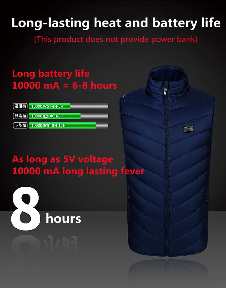 10. Посылка: 1 жилет без рукавов (Мобильная мощность не входит в комплект)