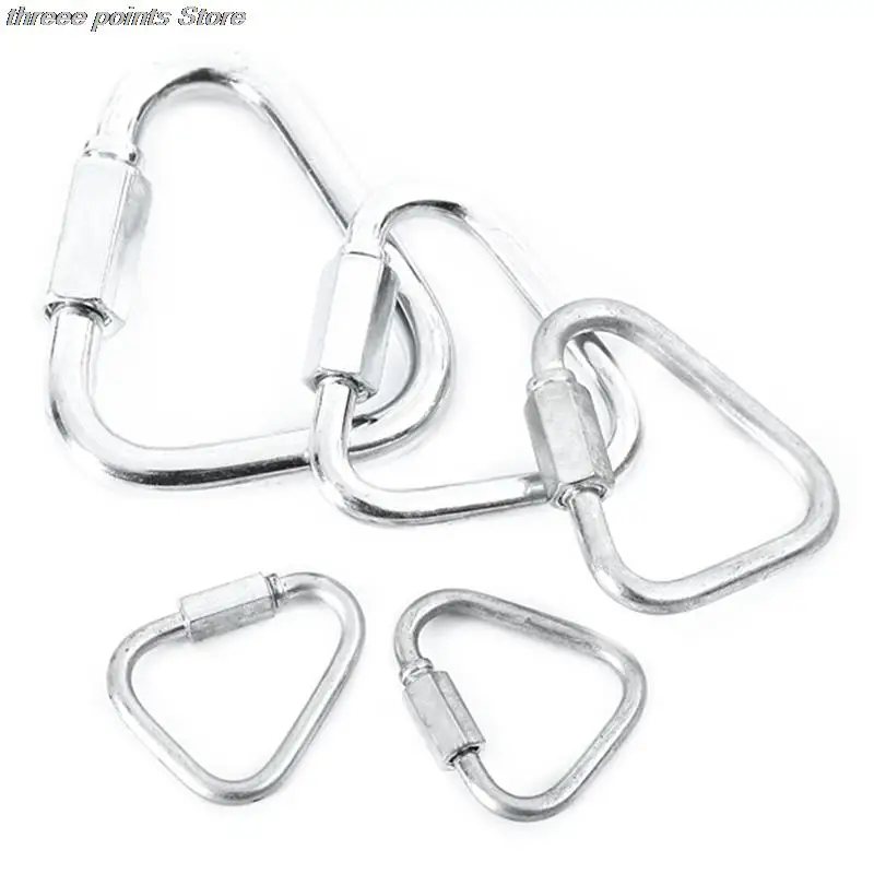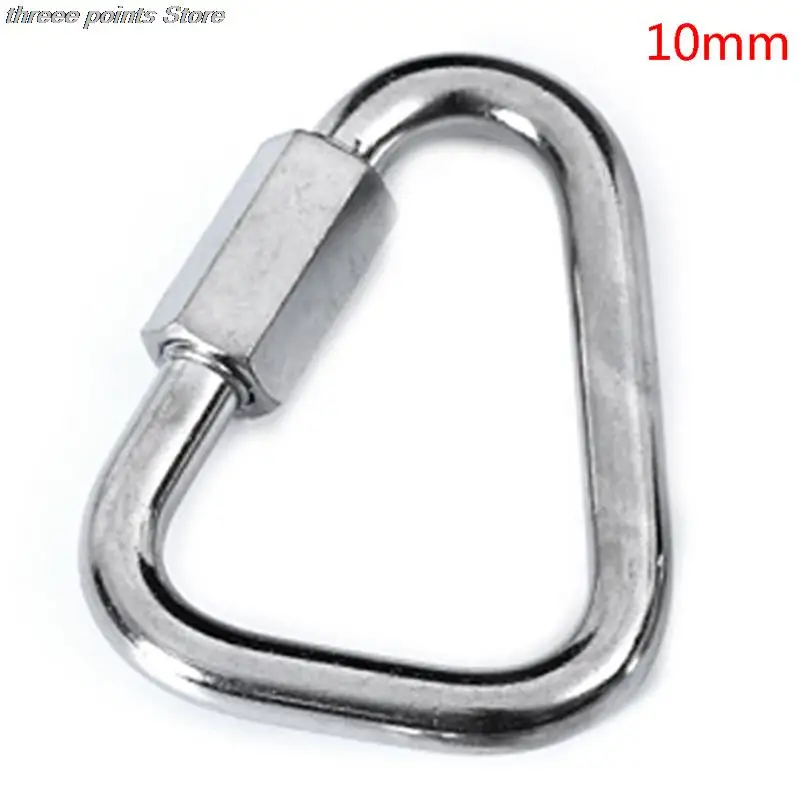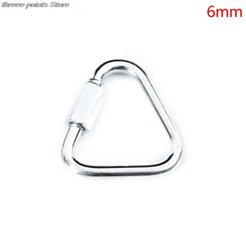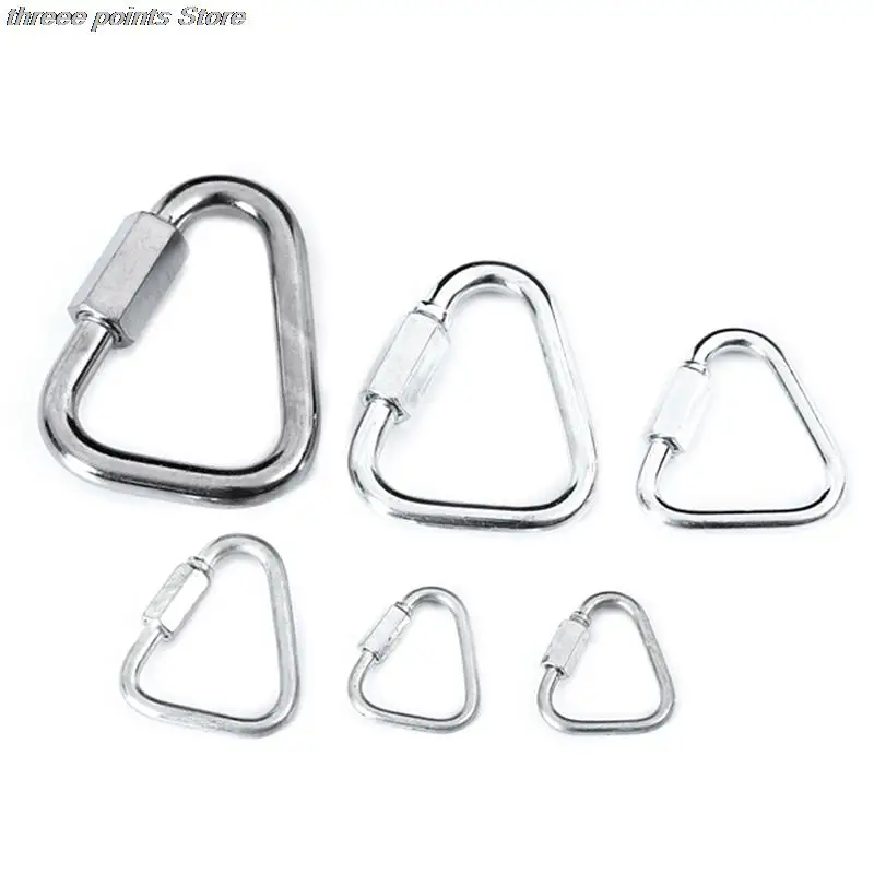 Описание:Безопасный замок, сильная несущая способность.Применяется для скалолазания, высотных операций, кораблей и т. д.Тип: карабин треугольныйЦвет: серебристыйРазмер: показан на картинкеМатериал: нержавеющая стальПосылка включает в себя:2 шт. карабин треугольный