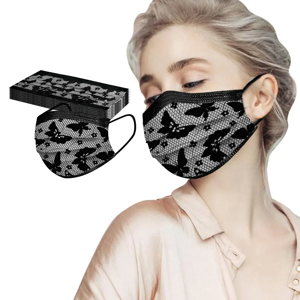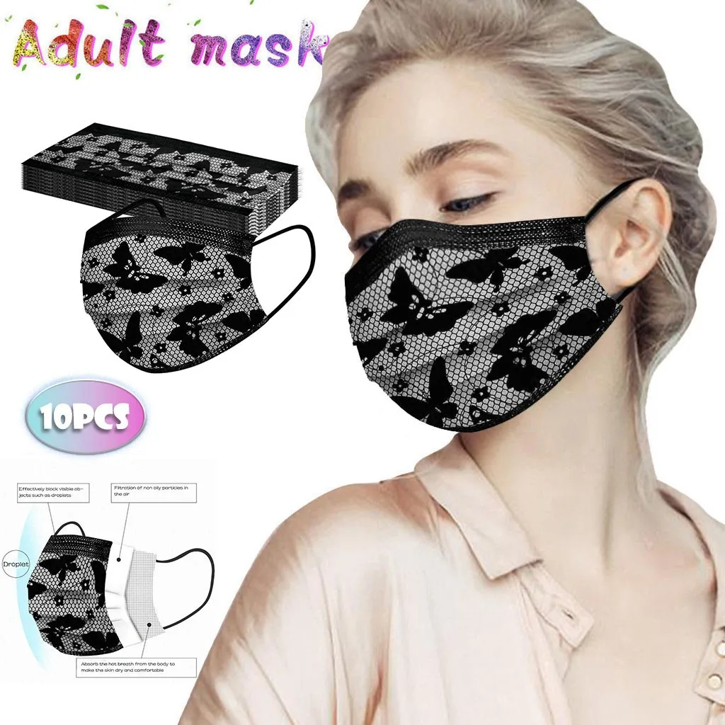 10 шт взрослые модные кружевные одноразовые защитные трехслойные дышащие маски для лица